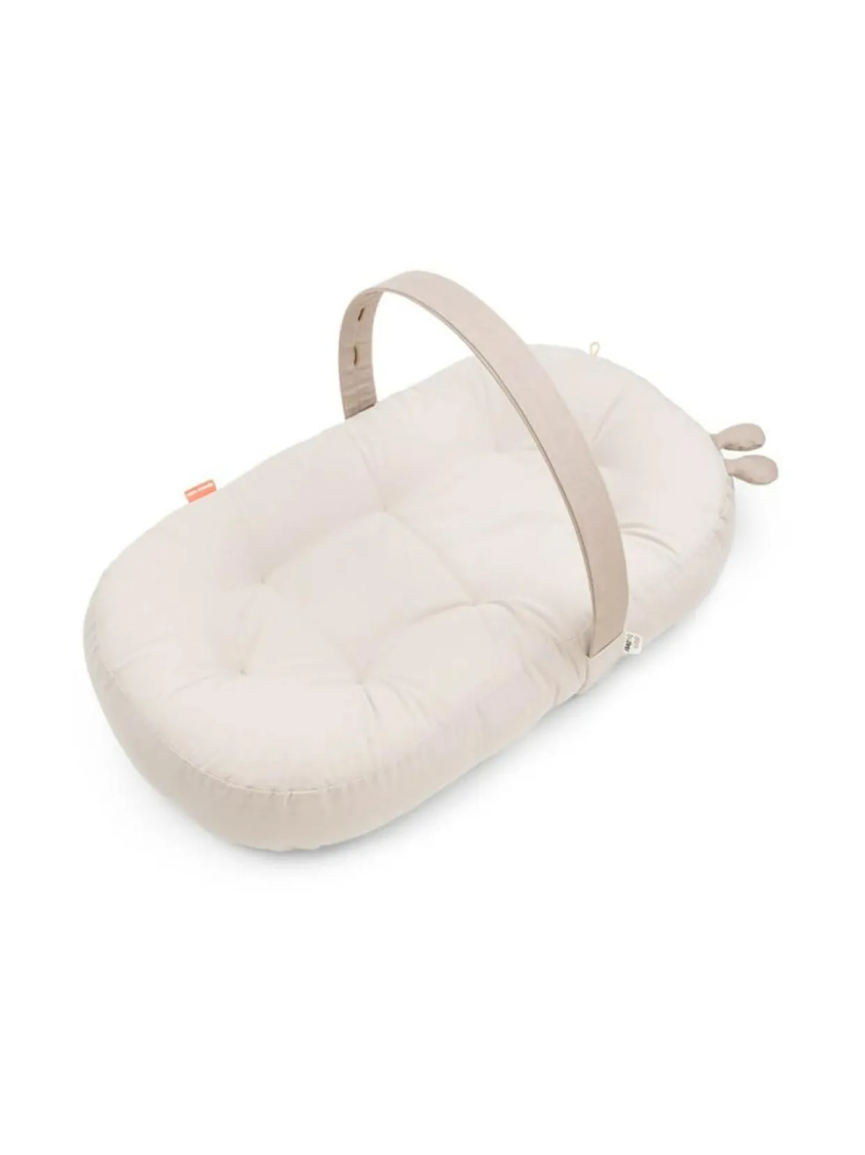 Done by Raffi Sand Cozy lounger unipesä lelukaarella soveltuu vastasyntyneestä eteenpäin. Cozy loungeria voi käyttää sekä lelukaarella, että ilman. Unipesän voi laittaa esimerkiksi pinnasänkyyn, jossa se pienentää vauvan tilaa pesämäisesti. Tiiviissä pesässä lapsi tuntee olonsa turvallisemmaksi.