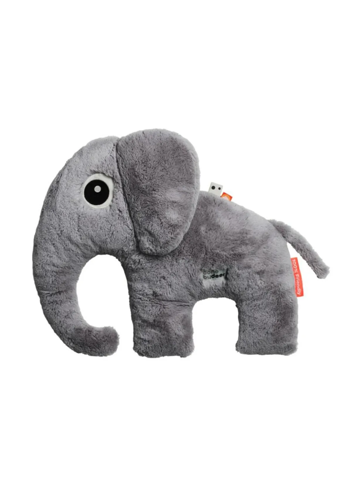 Done by Deer Cuddle Friend Elphee grey on iso ja erityisen pehmeä pehmolelu lapselle. Pehmolelua voi käyttää niin leluna kuin tyynynä, koska se on niin ihanan pehmeä ja malliltaan litteä. Elefantti pehmolelussa on isot harmaat korvat ja häntä sekä muutama lappu, joita lapsi voi tunnustella.