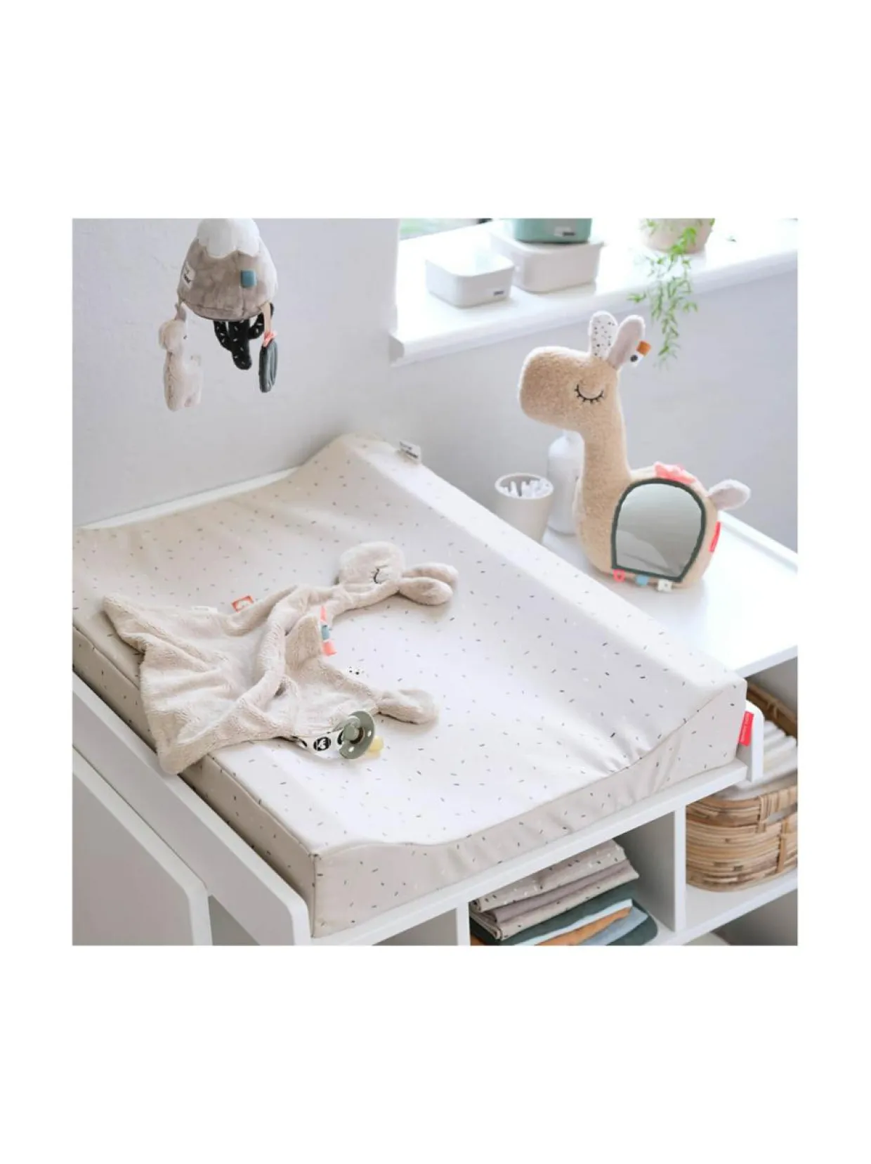 Done By Deer Easy Wipe hoitoalusta on helppo pitää puhtaana, sillä hoitoalustan materiaali on vettähylkivää. Tarpeen vaatiessa päällisen voi pestä myös pesukoneessa. Hoitoalusta on muotoiltu hieman korkeammilla reunoilla, ettei vauva pääse kääntymään pois alustan päältä. Lisätiedot: