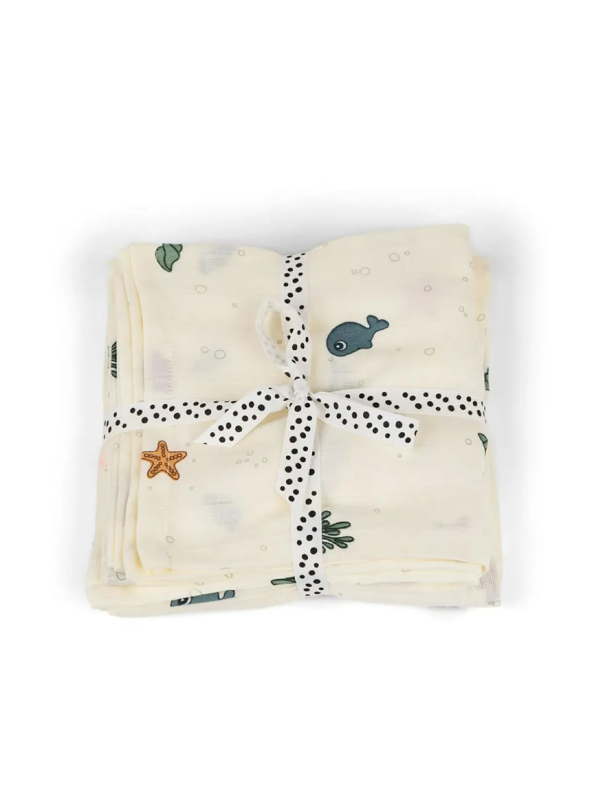 Done by Deer Sea friends harsopaketti 2 kpl sisältää kaksi 120 x 120 cm kokoista harsoa. Pehmeät harsot ovat monikäyttöisiä ja niitä voi käyttää esimerkiksi röyhtäyttämiseen, suojapeitteenä, kapalona tai monitoimirättinä.