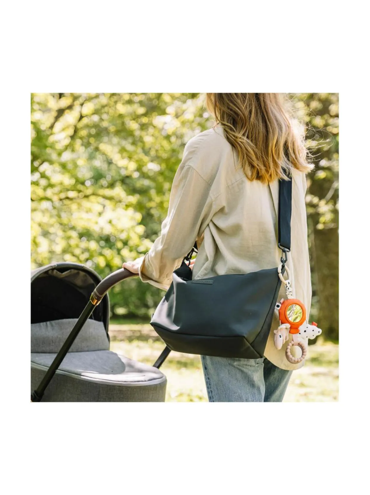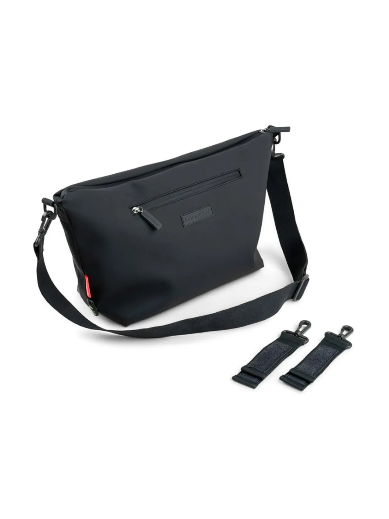 Done by Deer hoitolaukku aisaan on helppo kiinnittää vaunuihin mukana tulevilla hihnoilla. Tyylikäs laukku on valmistettu käyttäen kierrätettyjä muovipulloja. Laukussa on yksi isompi tasku, sekä neljäsisätaskua ja yksi ulkotasku. Laukun olkahihna on joustava ja säädettävä. Lisätietoja: