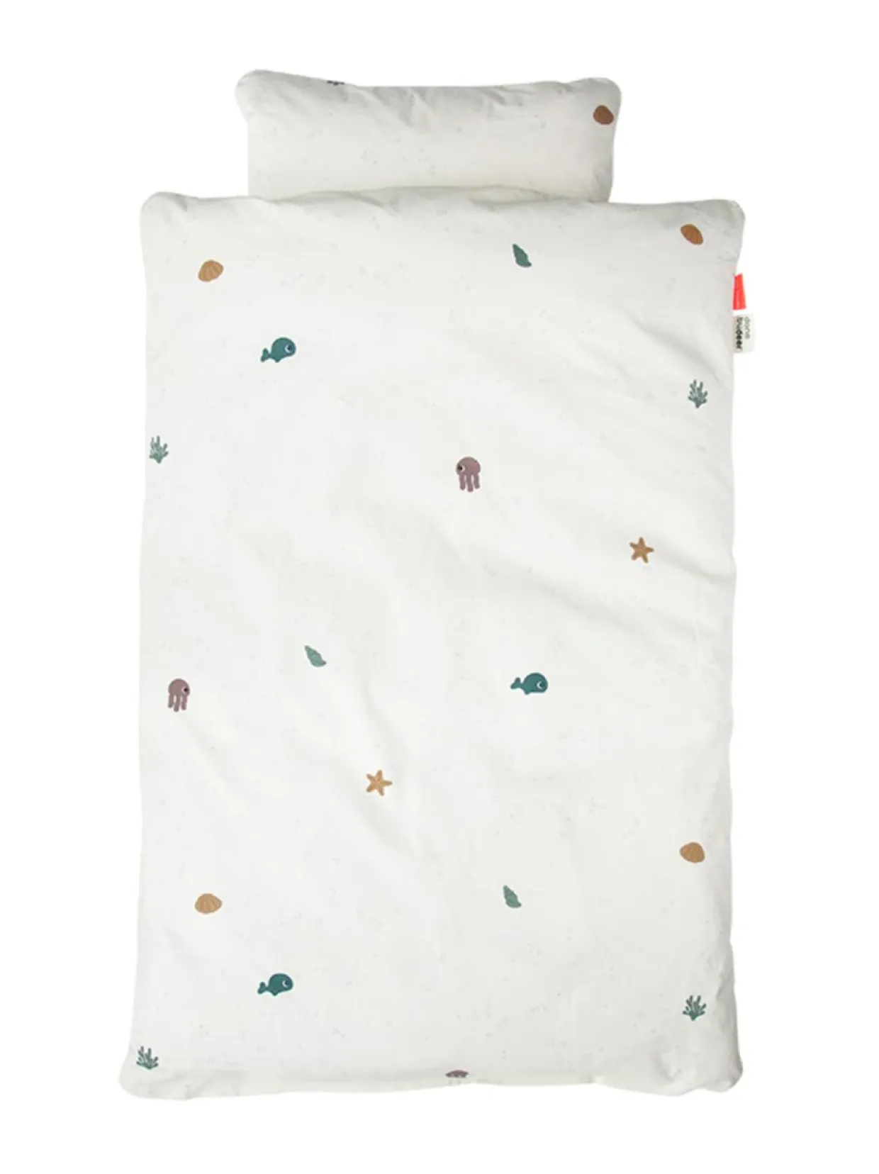 Done by Deer lakanasetti Baby on kooltaan 100 x 140 cm. Lakanasetti kuuluu Sea Friends -sarjaan, jossa on kaunis vedenalainen maailma.