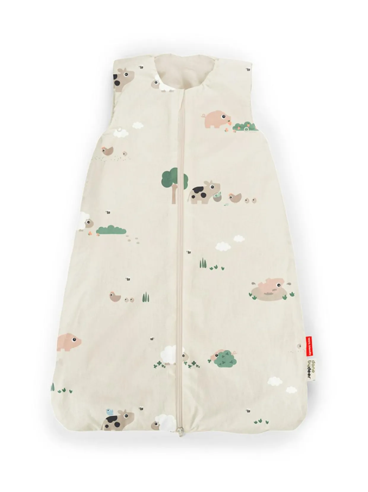 Done by Deer unipussi 70 cm 2.5 Tog unipussi on lämmin unipussi polyesteritäytteellä. Unipussi pitää lapsen lämpimänä kylminäkin öinä eikä ole huolta siitä, että peitto ei pysyisi lapsen päällä. Unipussi voidaan avata etuosasta kokonaan auki vetoketjulla, jolloin lapsi on helppo asettaa sen sisään ja vaipanvaihtokin onnistuu nopeasti. Käsiaukkoja saadaan säädettyä eri kokoisille lapsille. Unipussin sisus on pehmeää puuvillatrikoota.