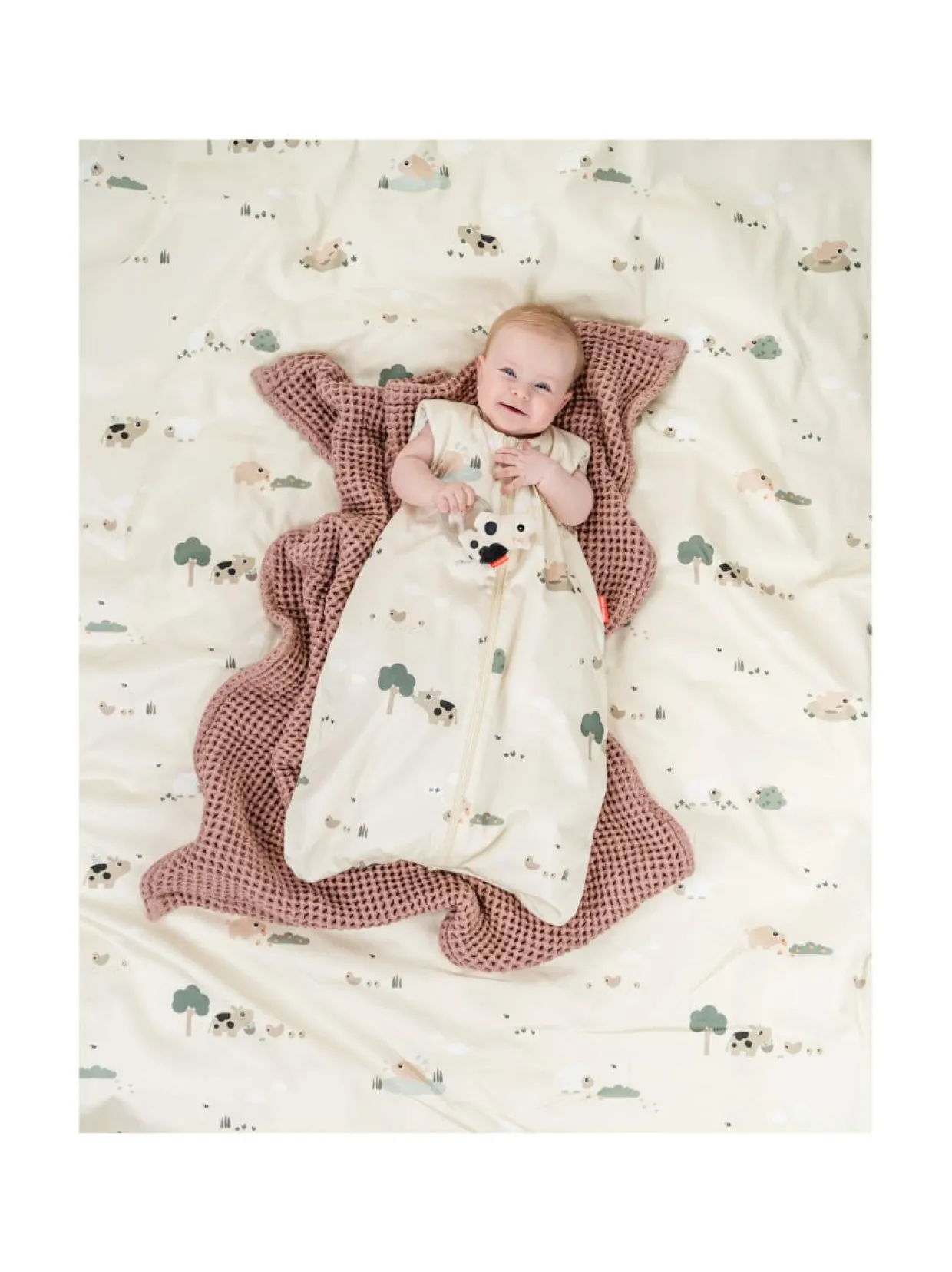 Done by Deer unipussi Tiny Farm 90 cm 2.5 Tog unipussi on lämmin unipussi polyesteritäytteellä. Unipussi pitää lapsen lämpimänä kylminäkin öinä eikä ole huolta siitä, että peitto ei pysyisi lapsen päällä. Unipussi voidaan avata etuosasta kokonaan auki vetoketjulla, jolloin lapsi on helppo asettaa sen sisään ja vaipanvaihtokin onnistuu nopeasti. Käsiaukkoja saadaan säädettyä eri kokoisille lapsille. Unipussin sisus on pehmeää puuvillatrikoota.