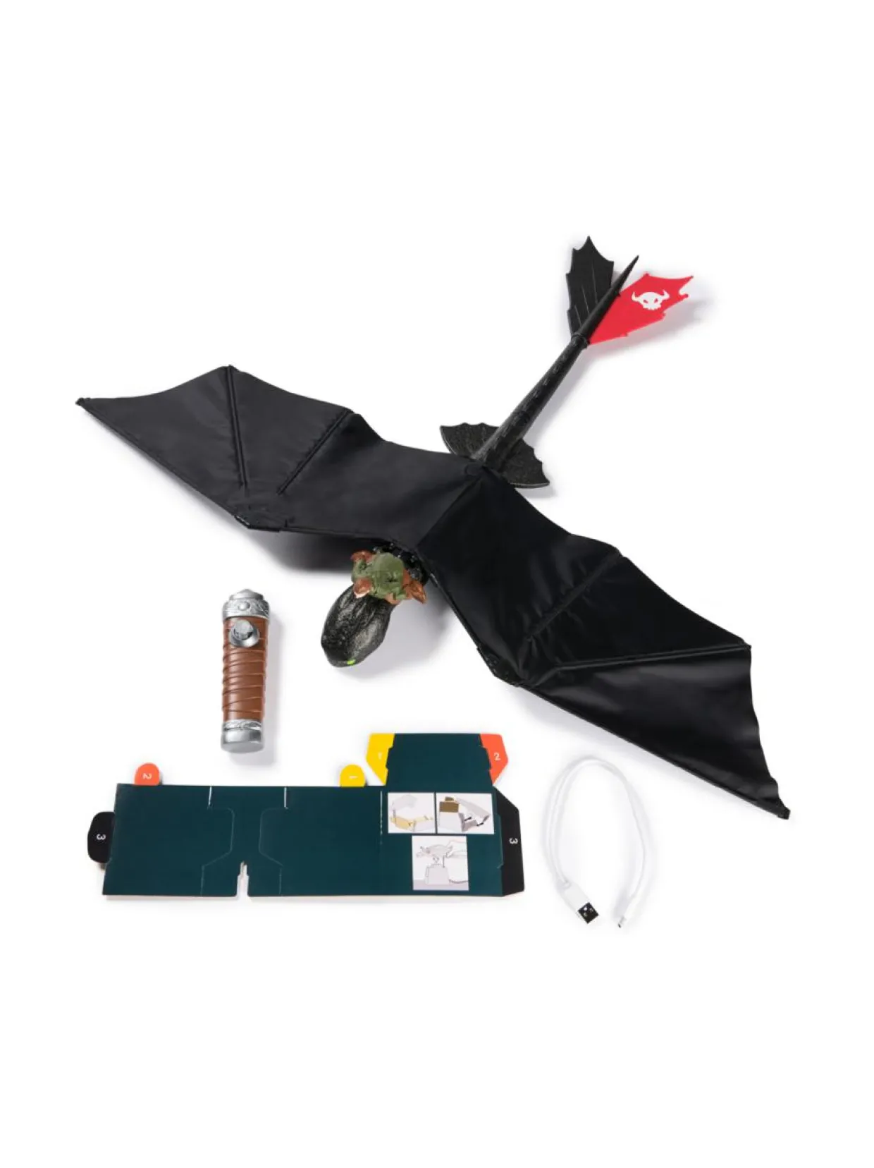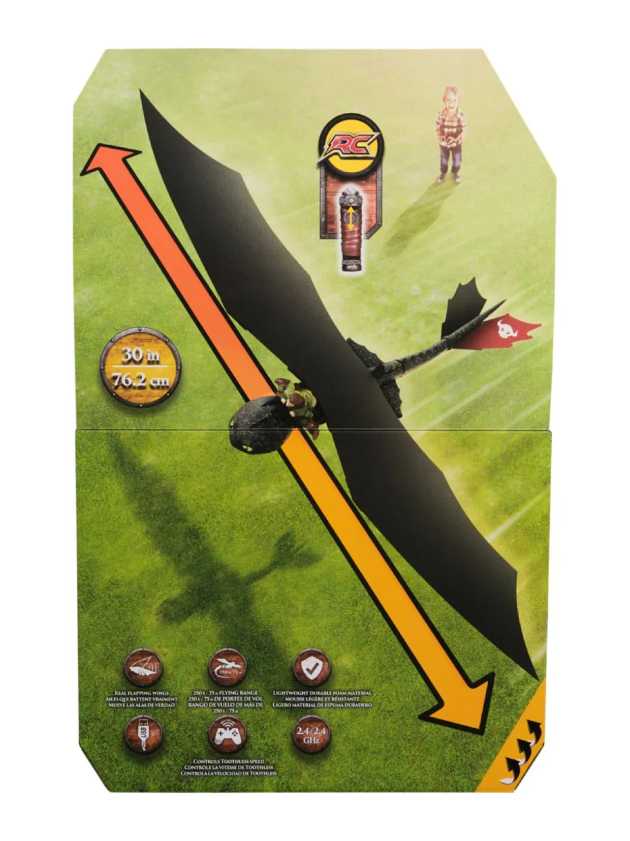 Koe Näin koulutat lohikäärmeesi -elokuvien taika lentävän Hampaattoman kanssa! Upea kauko-ohjattava Hampaaton liitää taivaalla räpytellen realistisesti siipiään, mikä herättää lohikäärmeen eloon. Helppokäyttöisellä kauko-ohjaimella hallitset Hampaattoman liikkeitä vaivattomasti, saaden sen lentämään sulavasti suurissa kaarissa. Mukana tuleva Hikotus-hahmo tekee parivaljakosta valmiin korkealentoisiin seikkailuihin! 2,4 GHz:n taajuudella toimiva kauko-ohjain takaa sulavan ja luotettavan lennättämisen, ja vaikuttava yli 70 metrin kantama mahdollistaa kauas suuntautuvat lennot. Lisäksi USB:llä ladattava akku varmistaa, että hauskuus ei lopu kesken. Tuo kotiisi lentävä Hampaaton ja lähde uskomattomalle seikkailulle! Se on täydellinen valinta kaikille Näin koulutat lohikäärmeesi -elokuvan faneille ja kauko-ohjattavien laitteiden harrastajille.