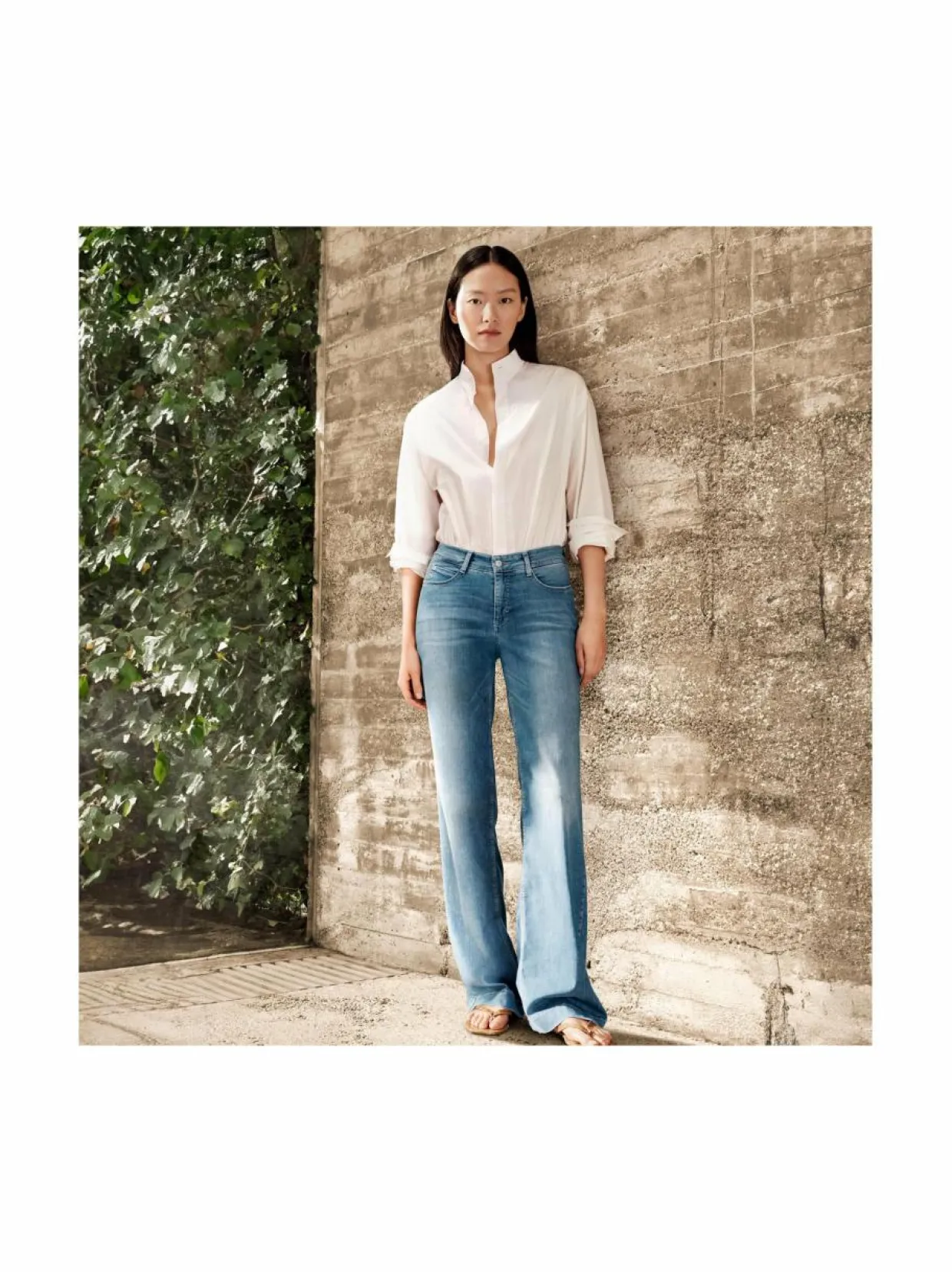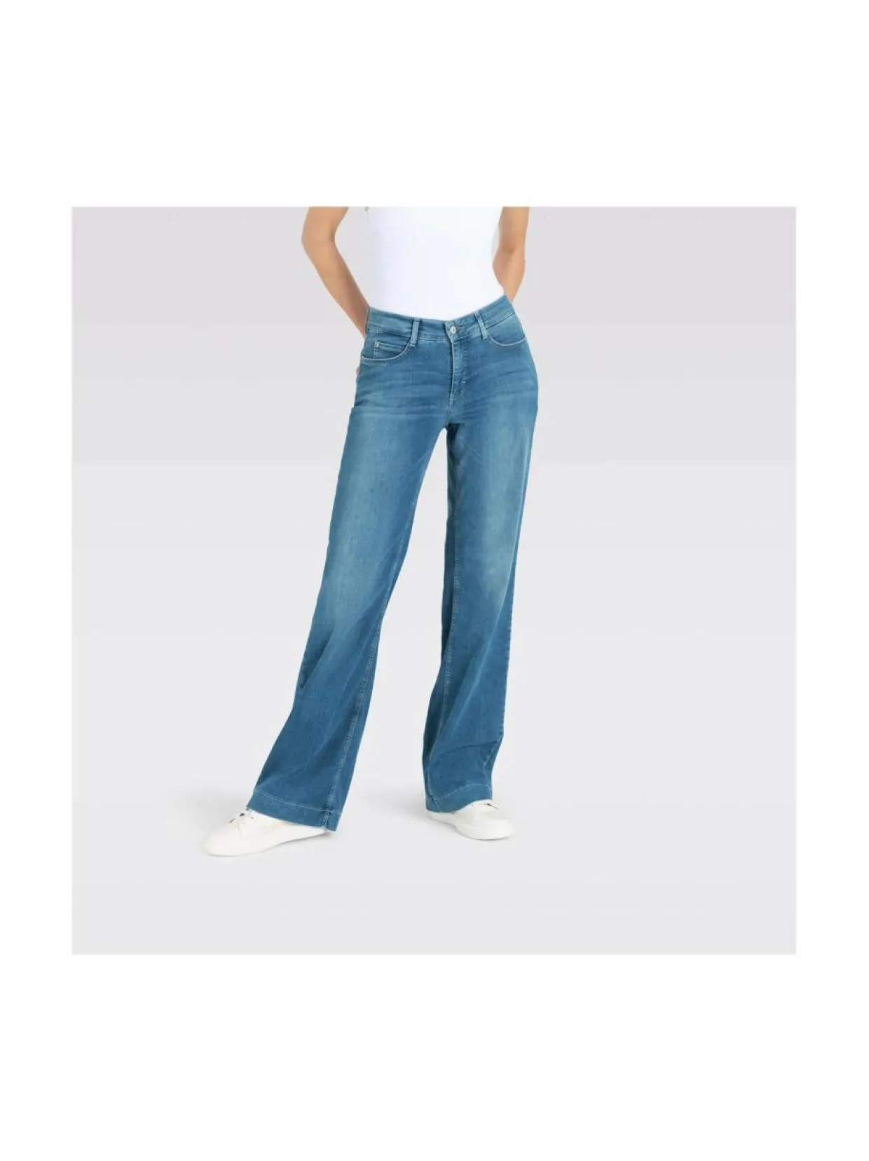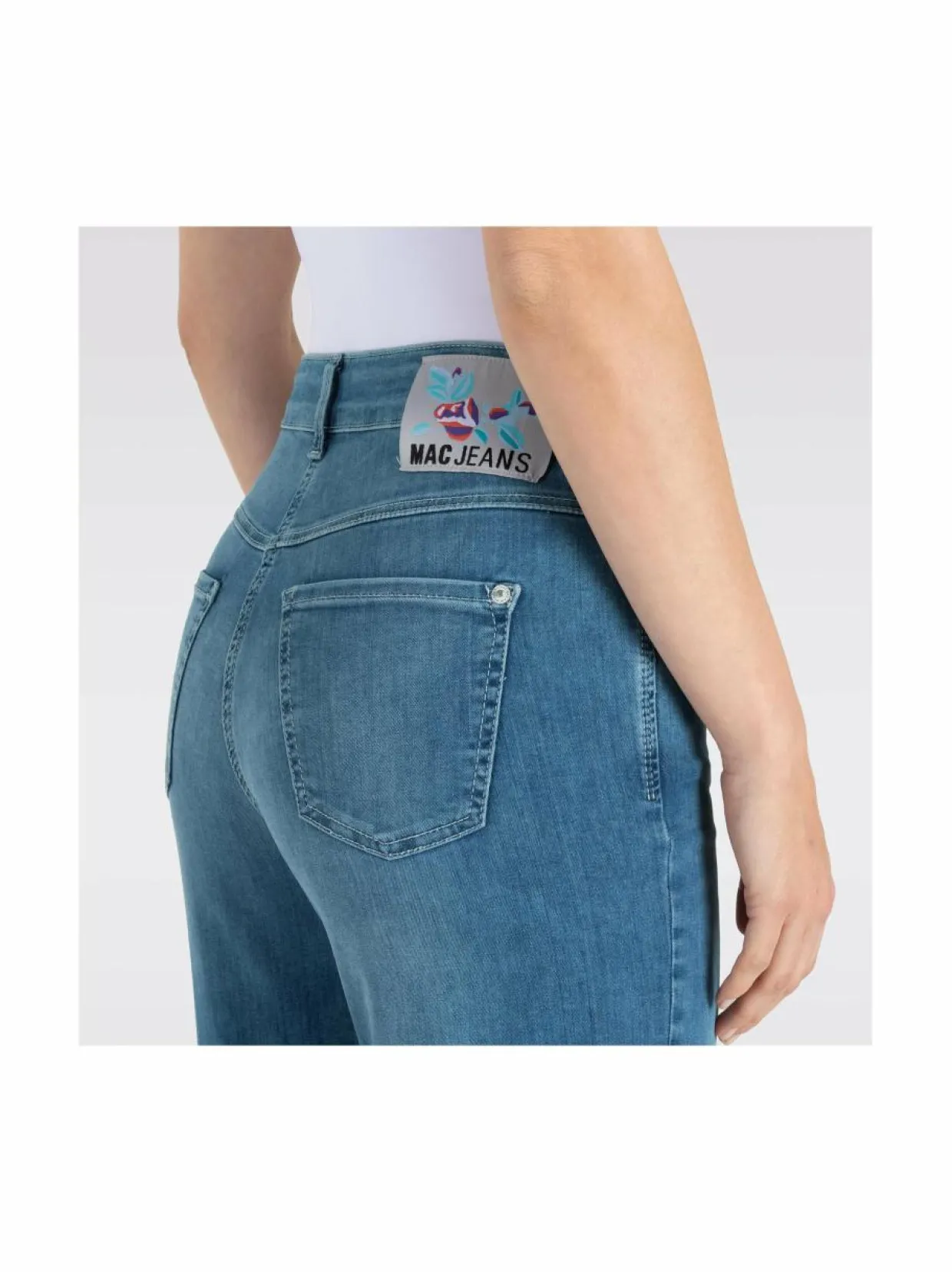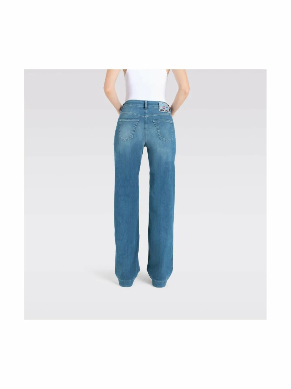 Mac Jeans tuotemerkin Dream Wide -farkut ovat mukavan joustavaa laatua. Ne ovat viisitaskumalliset ja niissä on trendikästä kulutusefektiä. Lahkeet ovat leveät ja suorat. Vyötärölinja on keskikorkea. Ne sopivat täydellisesti rentoon vapaa-ajan tyyliin ja ovat mukavat käyttää.
