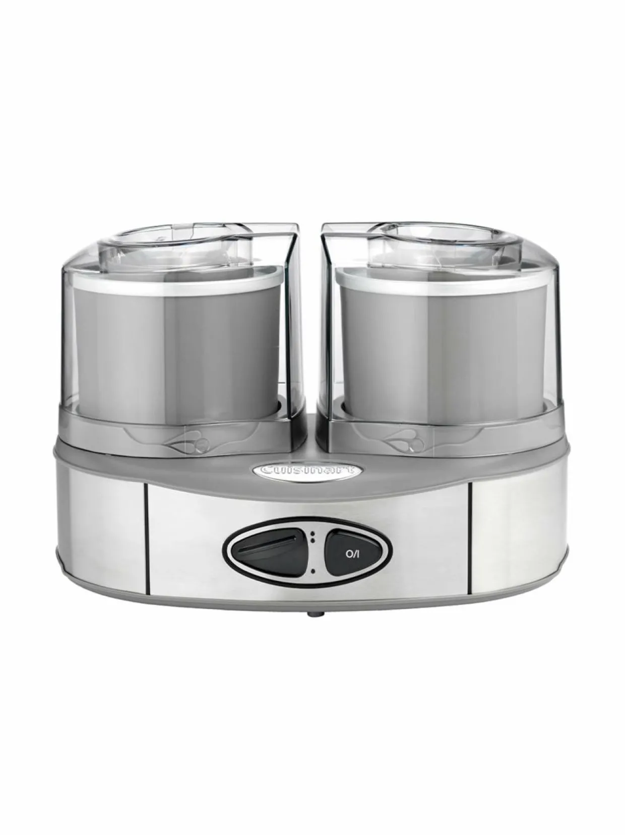 Cuisinart Duo -jäätelökoneella voit valmistaa herkullisia jäätelöitä ja sorbetteja helposti ja nopeasti. Kaksi erillistä jäätelökulhoa mahdollistavat kahden eri maun valmistamisen samanaikaisesti. Laita kulhot pakastimeen yön ajaksi (12 tunniksi), niin jäädytetty jälkiruokasi valmistuu vain 25 minuutissa. Kummankin kulhon tilavuus on 1 litra. Kulhot ovat irrotettavia ja helppoja puhdistaa.