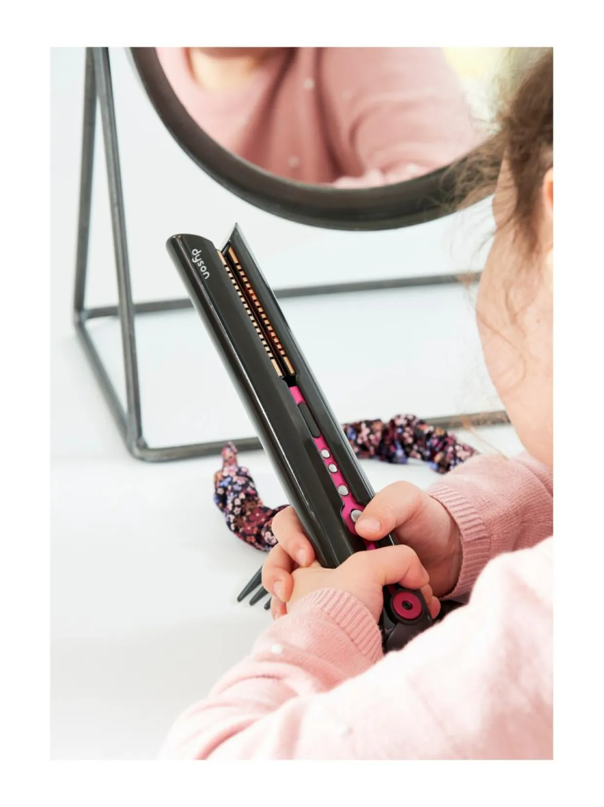 Setin leikkisuoristusrauta näyttää aivan Dysonin kuuluisalta Corrale-suoristimelta. Niissä on täsmälleen sama tyylikäs muotoilu ja leikkisuoristimessa on jopa realistiset valot ja äänet! Pienellä lapsellasi on varmasti hauskaa valmistautuessaan illanviettoon tai tehdessään kaikille nukeilleen hienot kampaukset.