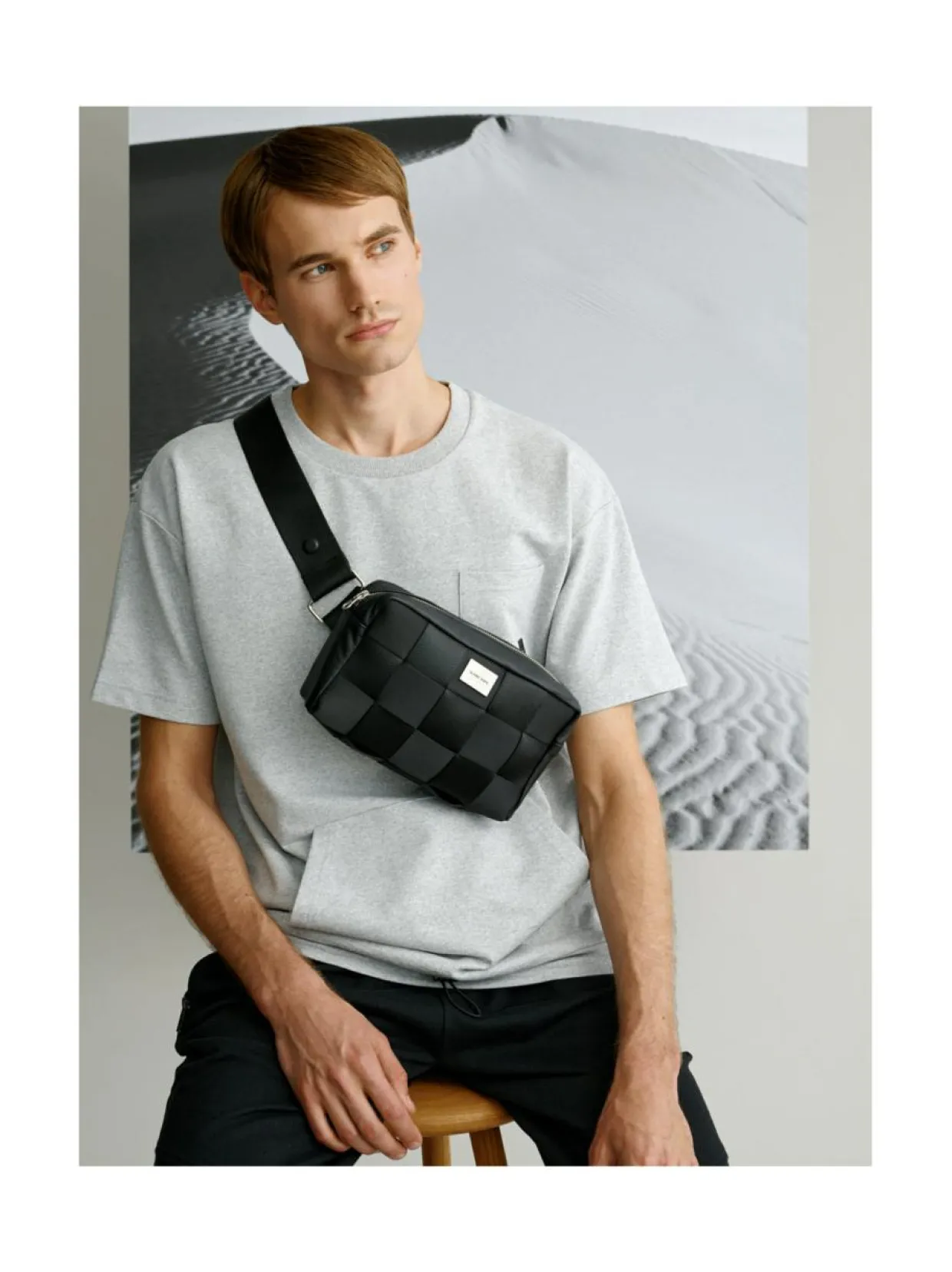 Koko: 23 x 14 x 5 cm, hihnan pituus 56-108 cmTuotenumero1364825 MateriaaliYlijäämä turvavyö Hoito-ohjeetKäsittele uuden laukun nahkaosat kosteussuojasuihkeella. Turvavyön yksittäisiä tahroja voi poistaa harjaamalla tai kostealla liinalla käyttäen apuna esimerkiksi sappisaippuaa. VäriMUSTA KokoOne size Avainsanatturvavyölaukku, vyölaukku, chest bag