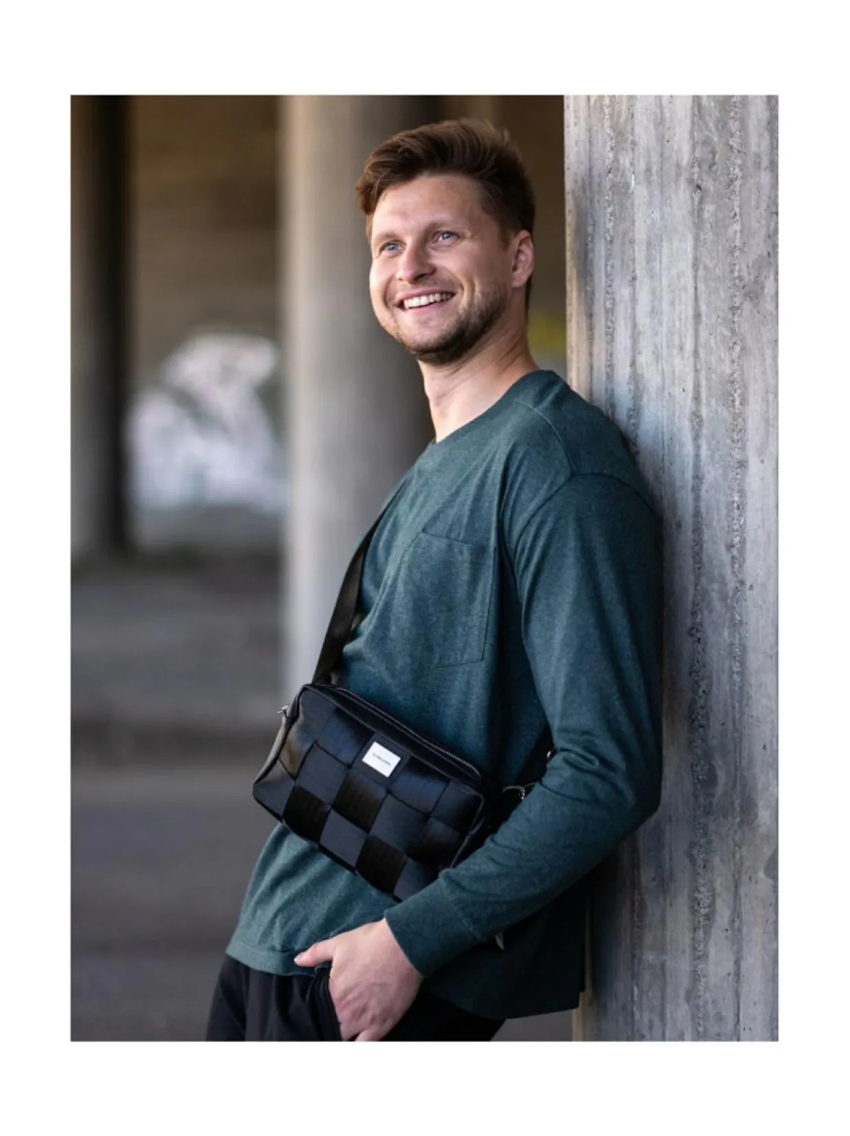 DYYNI on trendikäs turvavyölaukku, jonka persoonallinen punospinta on Suomessa käsin punottu ylijäämäturvavyöstä. Laukku on tilava, ja sen metallivetoketju pitää tärkeimmät tavarasi visusti turvassa. DYYNI on suunniteltu käytettäväksi vyölaukkuna, cross-body laukkuna rinnalla, tai olkalaukkuna. Monikäyttöinen laukku mukautuukin loistavasti eri tilanteisiin ja asuihin.