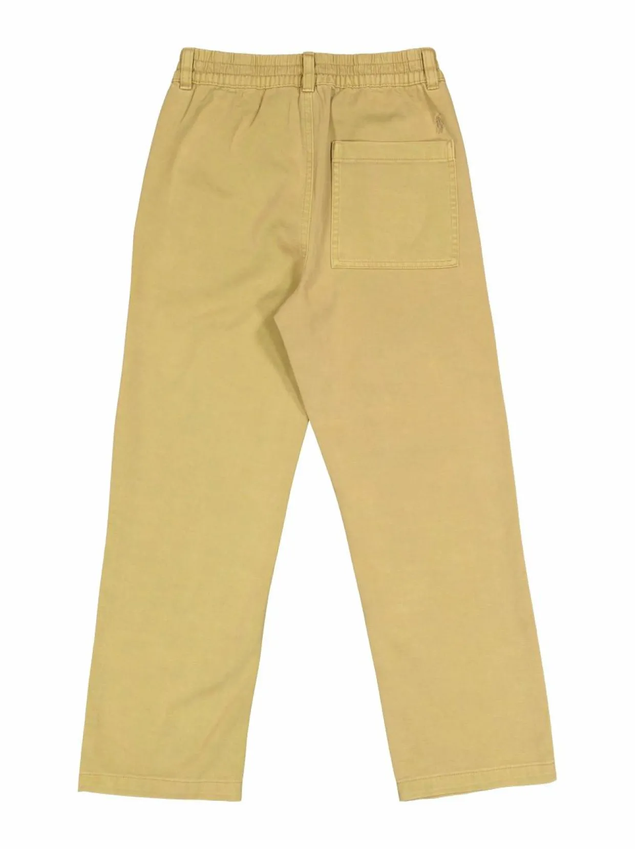 Puuvillaiset lasten/nuorten housut, joissa suorat lahkeet ja mukavan joustava vyötärö. Kaksi sivutaskua ja yksi takatasku. Vyötärölinjan alapuolella tyylikkäät muotolaskokset.