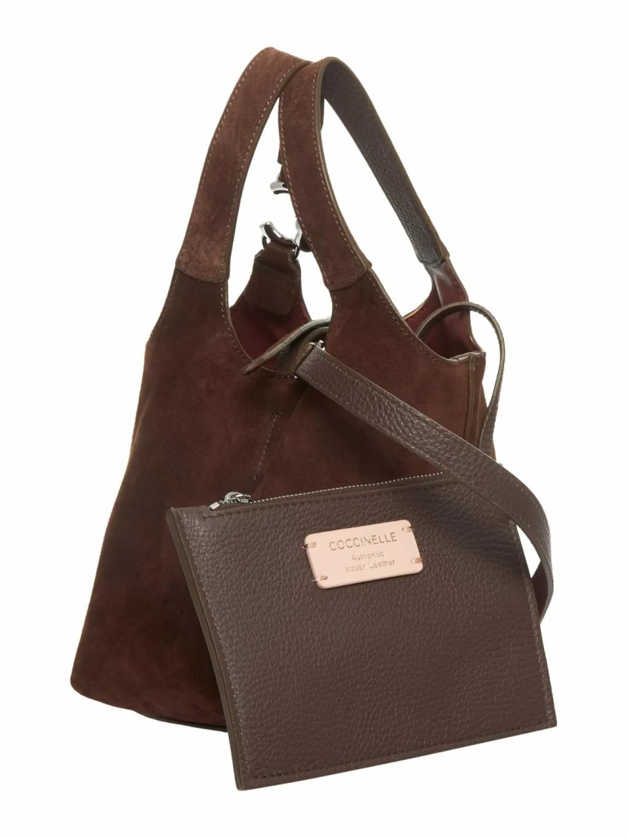 Coccinellen kompakti Easy Shopper S -laukku on valmistettu pehmeästä mokkanahasta, joka antaa sille ylellisen tunnun. Laukun sisäpuoli on vuorattu. Siinä on kantokahvojen lisäksi myös säädettävä olkahihna ja irrotettava vetoketjullinen sisätasku. Laukun koko on 20 x 19 x 13 cm.