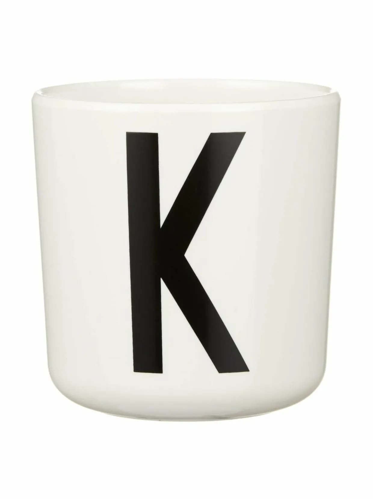 Yksinkertaisen tyylikkään kirjainmukin typografian on suunnitellut Arne Jacobsen. Korvaton muki soveltuu juomien lisäksi piensäilytykseen. Materiaali on melamiinia. Halkaisija on 7 cm, korkeus on 7 cm.