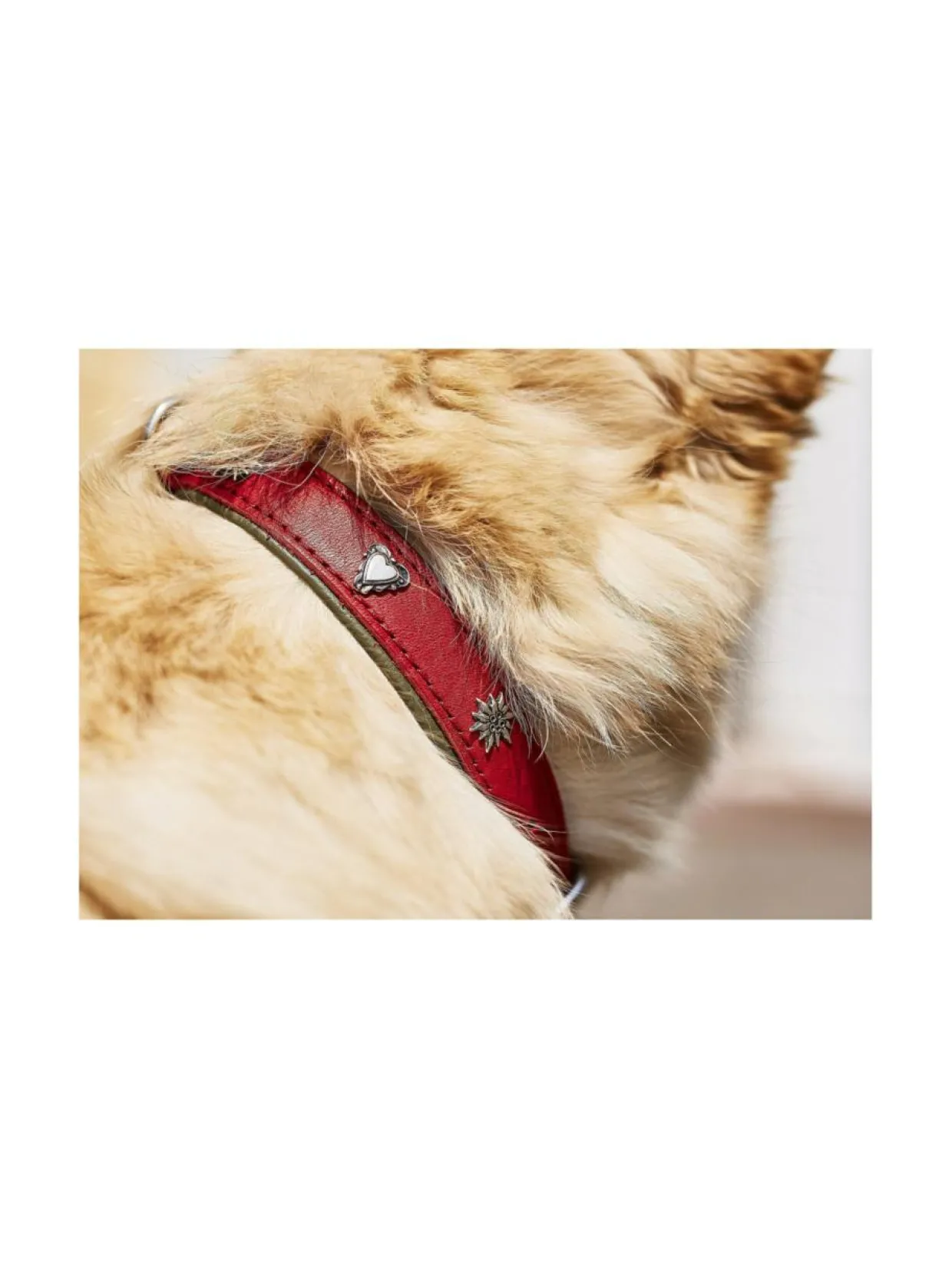 Tämä kestävästä, öljytystä nahkasta valmistettu ja upeilla koristeilla varusteltu Edelweiss kaulapanta ja talutushihna antavat parhaan käyttömukavuuden sekä sinulle että koirallesi. Pannassa on täydelliset saumat, laadukkaat kiinnikkeet sekä kiinteä karbiini takaamassa turvallisuutta. Pyöreä, ommeltu, 3-suuntaisesti säädettävä talutushihna tarjoaa erityisen pehmeän tunteen taluttaessa. Vahvan ompelun lisäksi hihnan ydin on vahvistettu nailonilla lisäämään kestävyyttä. Kaulaa vasten olevan alapuolen samettisen pehmeä nupukkinahka sopii hyvin myös herkille koirille.