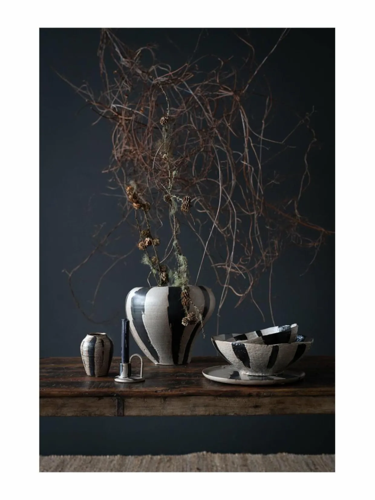 Wikholm Formin Eden-maljakko on upea ja persoonallinen sisustuselementti, joka tuo kotiin ripauksen luonnon inspiroimaa taidetta. Tämä 13 x 20 cm kokoinen keraaminen maljakko on viimeistelty käsinmaalatuilla kuvioilla, jotka antavat sille uniikin ja rustiikkisen ilmeen. Maljakon rouhea pinta ja maanläheiset sävyt korostavat sen luonnollista kauneutta, tehden siitä täydellisen lisän mihin tahansa sisustustyyliin.