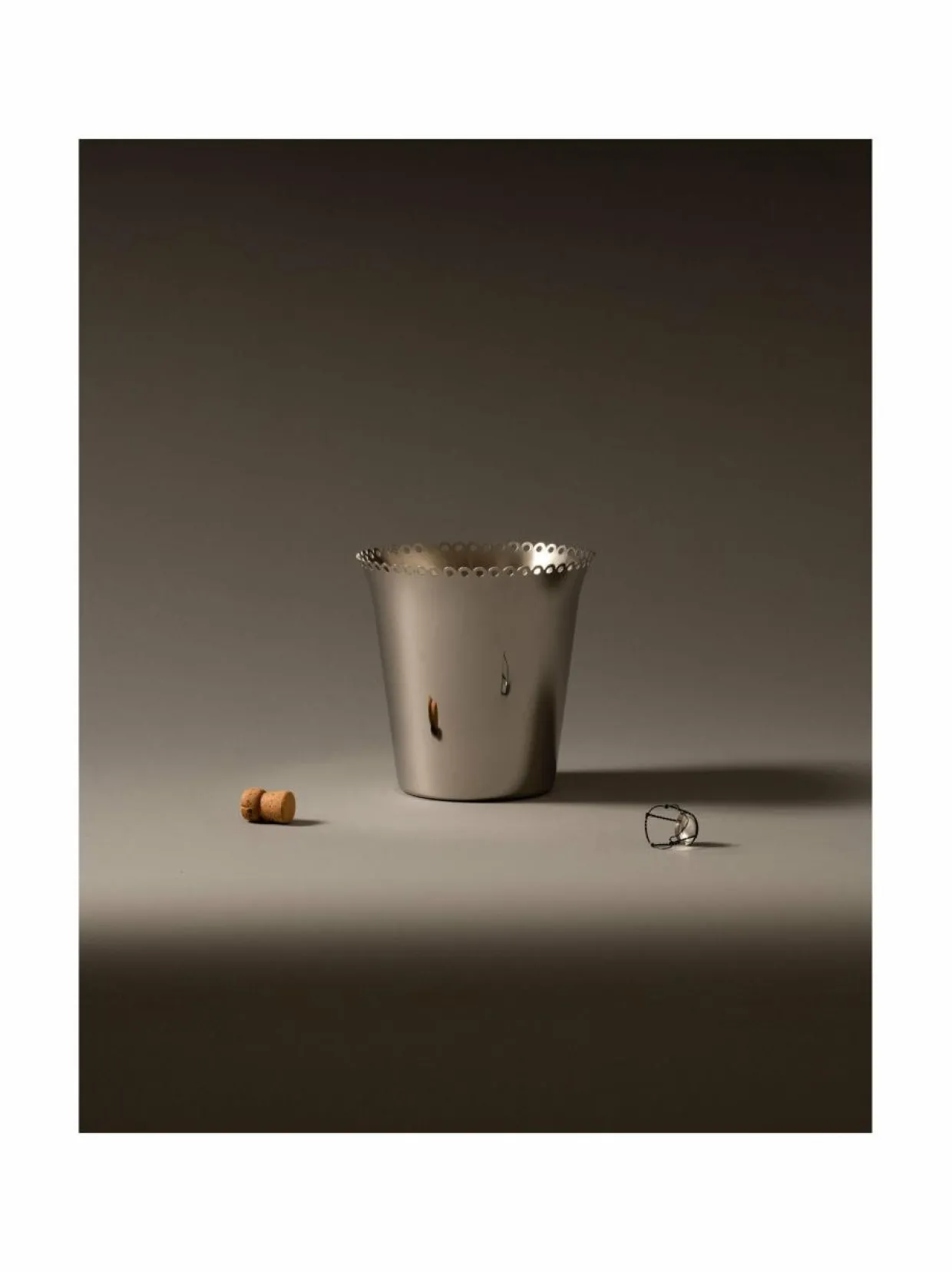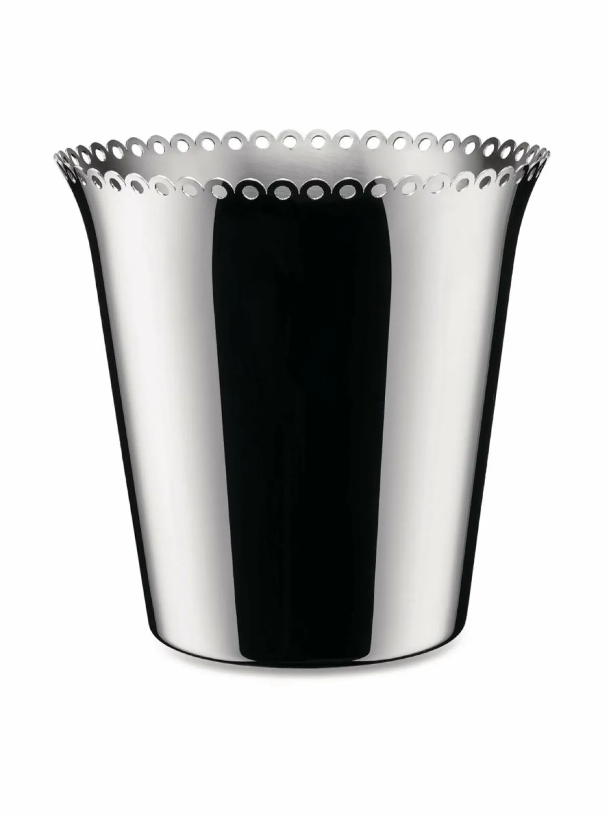 Kauniisti muotoiltu astia viinin ja samppanjan jäähdyttämiseen uudesta il Tornitore Matto -sarjasta. Alberto Alessin suunnittelema viininjäähdytin liittyy hänen isoisänsä perinteisiin metallintyöstötaitoon. Valmistettu hopeanvärisestä ruostumattomasta teräksestä, joka on huolellisesti kiillotettu. Kohotettu reuna ja rei’itetyt yksityiskohdat tekevät tästä telineestä upean keskikohdan kattaukseen ja korostavat sen käsityötaidon huolellisuutta.