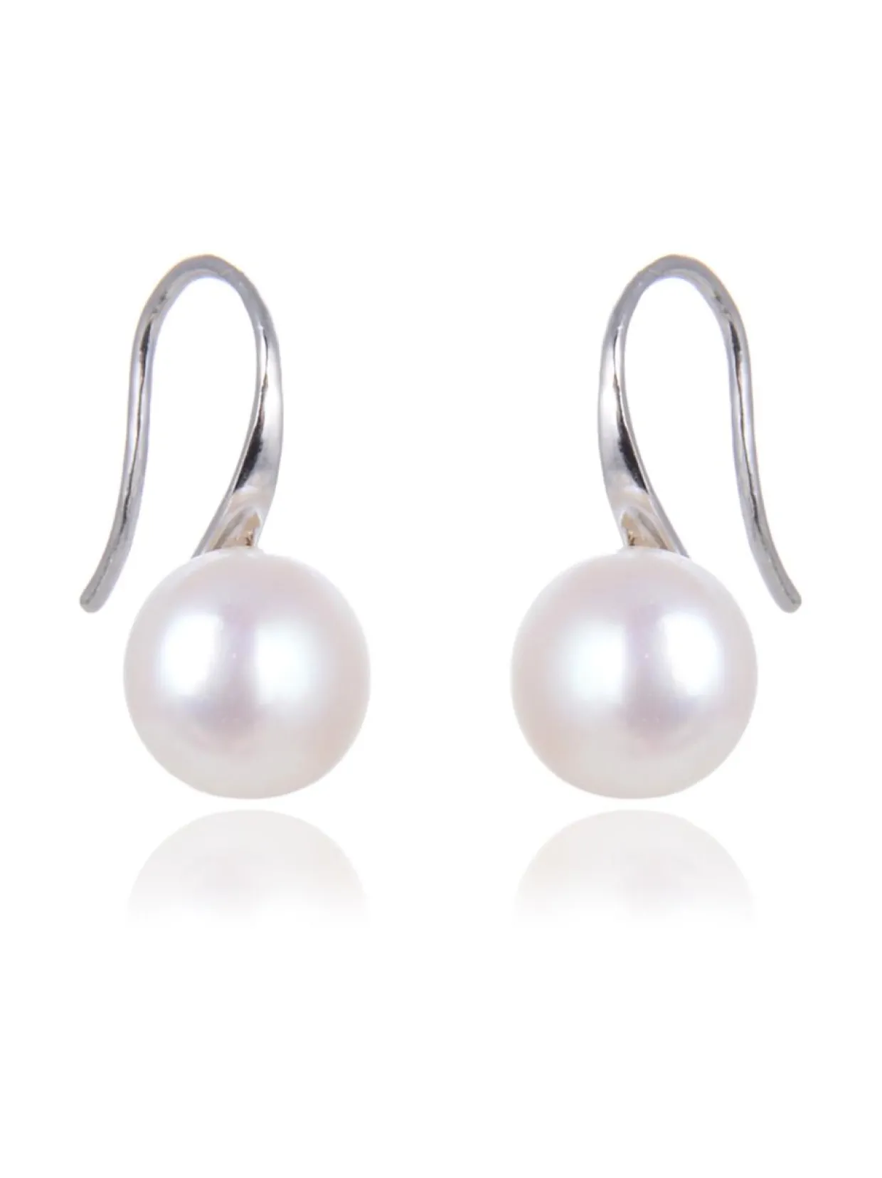 Perinteisen tyylikkäät koukulliset helmikorvakorut 8 mm makeanvedenhelmillä ja hopearungolla.