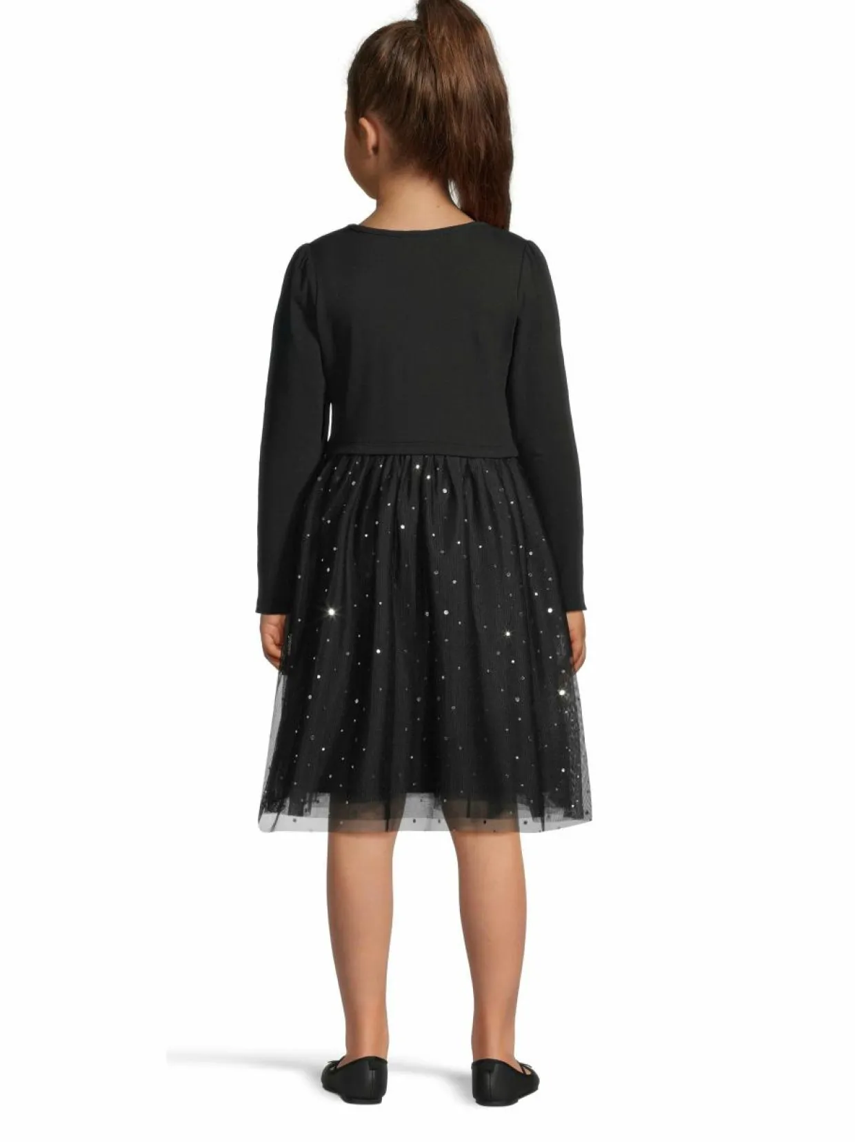 Upea Elaine-mekko on valmistettu pehmeästä jerseystä ja siinä on kerrostettu, kiiltävillä paljeteilla koristeltu tyllihelma. Mekko on mukava ja helppo pukea päälle. Sen yläosaa koristaa kissakuvio. Se sopii täydellisesti juhliin ja erilaisiin tilaisuuksiin.