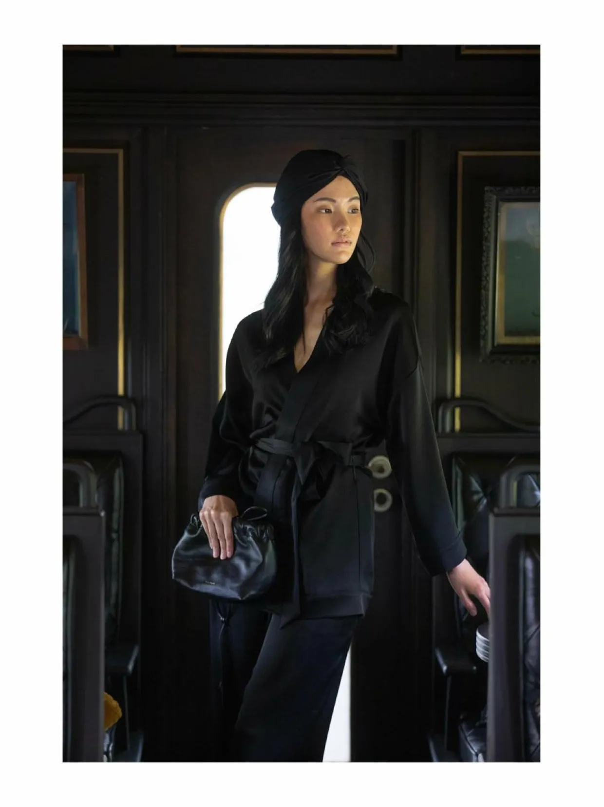 Minilaukku pehmeästä ja sileästä lampaan nappanahasta. Suljetaan kiristysnyörillä.