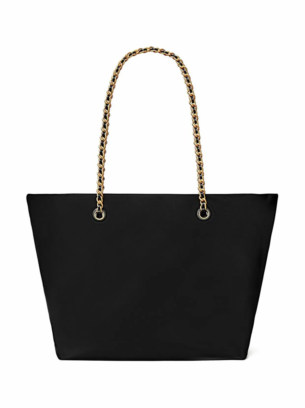 Ella Chain Tote -shopperilaukku on valmistettu kevyestä ja kierrätetystä polyamidista, jossa on punottu ketjuolkahihna. Tämä laukku on ihanteellinen jokaiseen päivään ja lomamatkalle, sillä siinä on tilava päälokero. Laukkuun mahtuu 13 tuumainen kannettava tietokone.