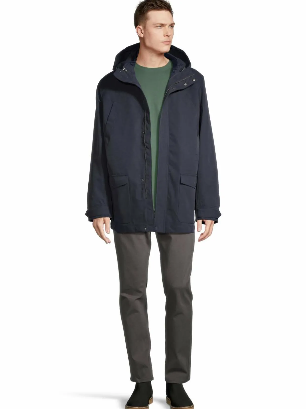 Tämä ulkotakki suojaa sekä tihkusateelta että tuulelta. Kolmikäyttöisessä parkassa on monta käyttömahdollisuutta. Sisäinen kevyt tikkitakki painonapeilla on irrotettava, ja sitä voit käyttää myös erikseen.