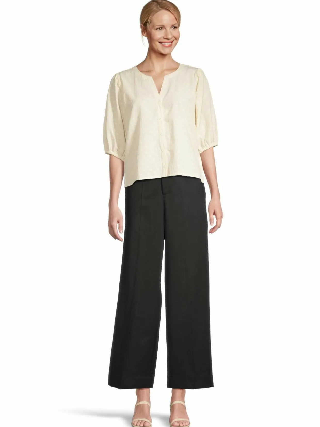R-Collection Emma -housut ovat tyylikkäät ja mukavat. Ne sopivat monenlaisiin tilaisuuksiin. Housut on valmistettu laadukkaasta sekoitteesta, joka on pehmeää, joustavaa ja kestävää. Housuissa on suorat lahkeet ja vyötäröllä on vyölenkit. Niissä on kaksi sivutaskua ja kaksi takataskua. Ne sopivat erinomaisesti sekä arkeen että juhlaan. Housut ovat hieman leveämmät lahkeista.