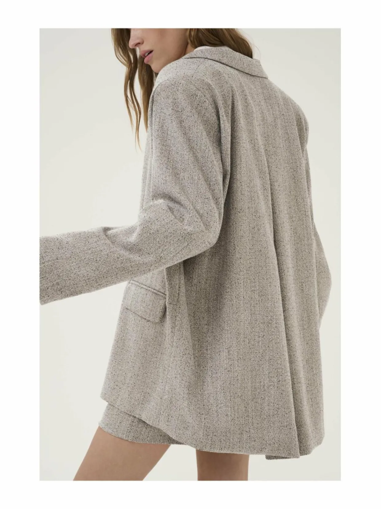 Materiaali78 % polyesteri, 20 % viskoosi, 2 % elastaani Vuorimateriaali95 % polyesteri, 5 % elastaani Hoito-ohjeetKemiallinen pesu ValmistusmaaKiina Väri1304011 OATMEAL MELANGE Avainsanatbleiseri, naisten bleiseri, väljä bleiseri, my essential wardrobe, irtotakki