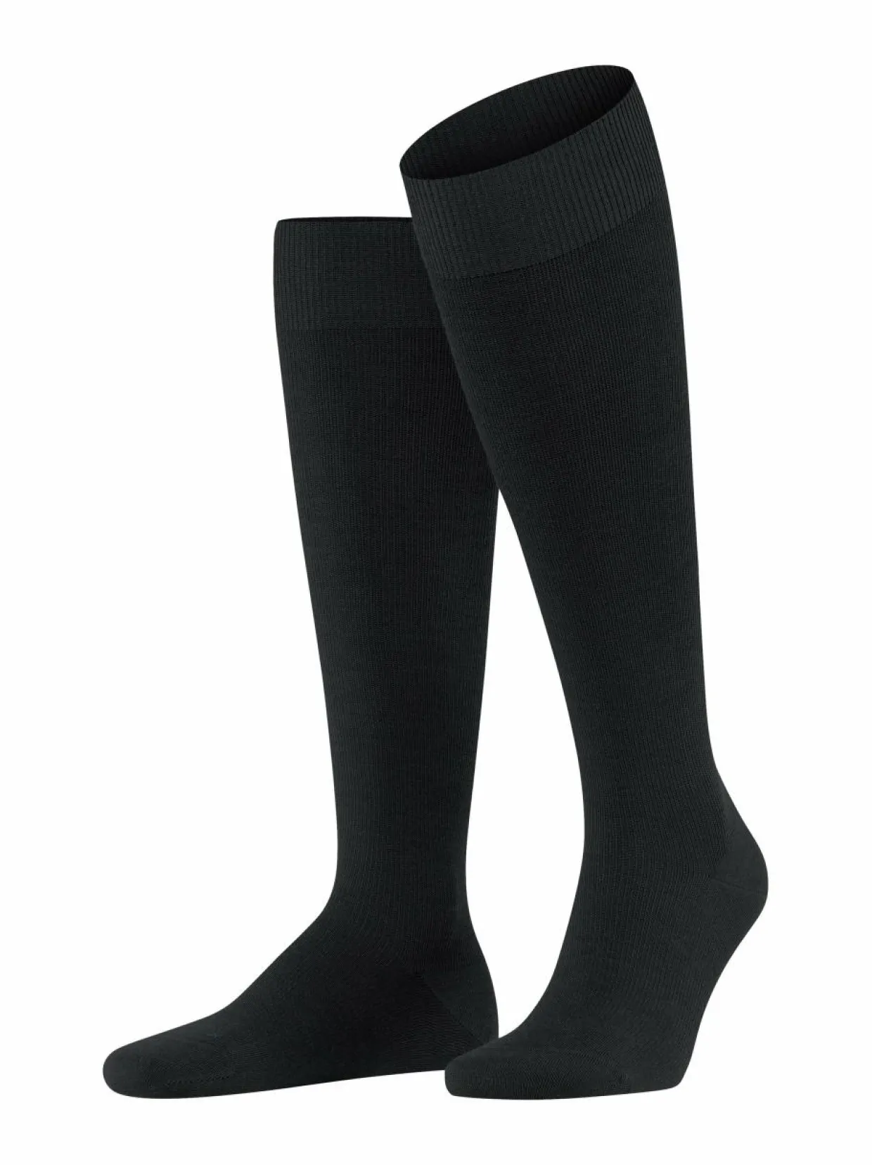 Polvimittaisten Falke lentosukkien keskivahva kompressio parantaa verenkiertoa ja ehkäisee matkustamisesta sekä istuma- tai seisomatyöstä johtuvaa jalkojen väsymistä ja turpoamista. Sukat on valmistettu lämpimästä merinovillasekoitteesta.