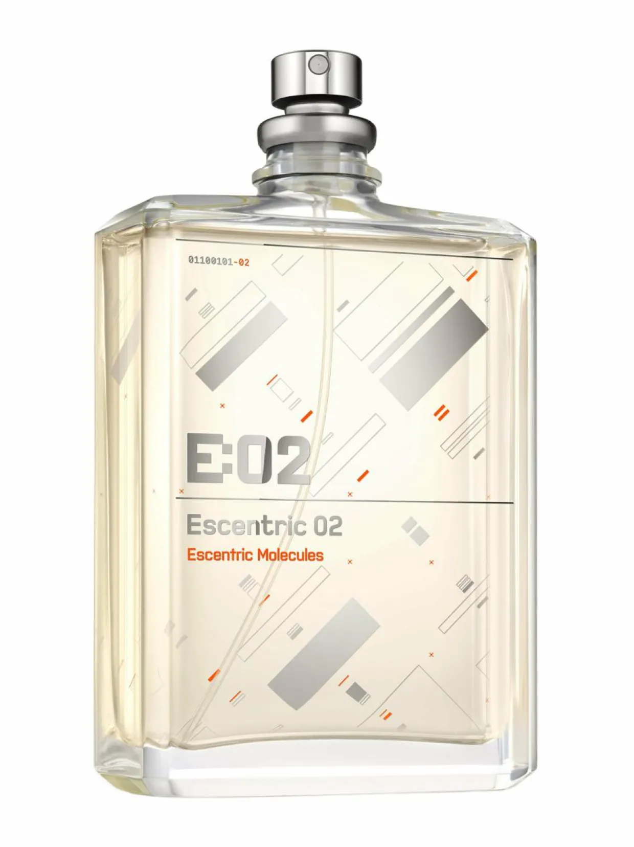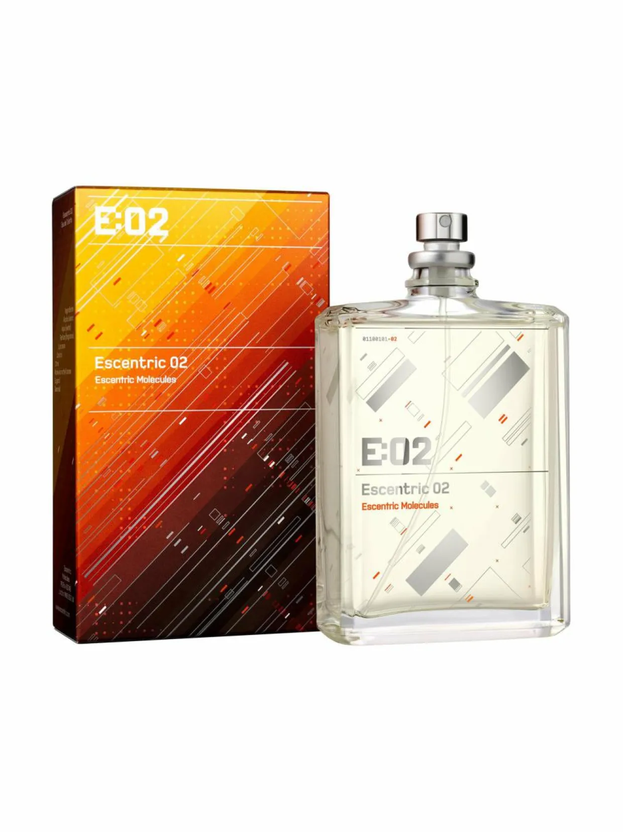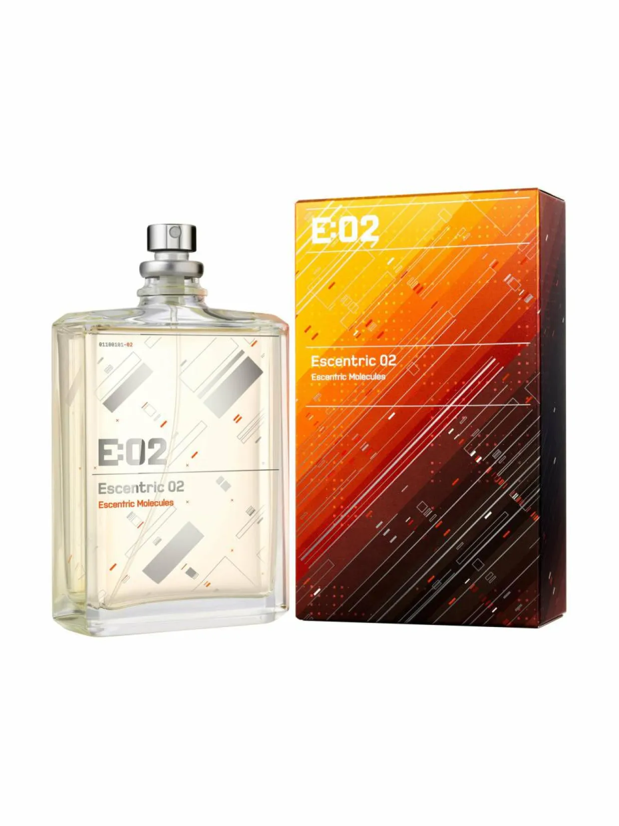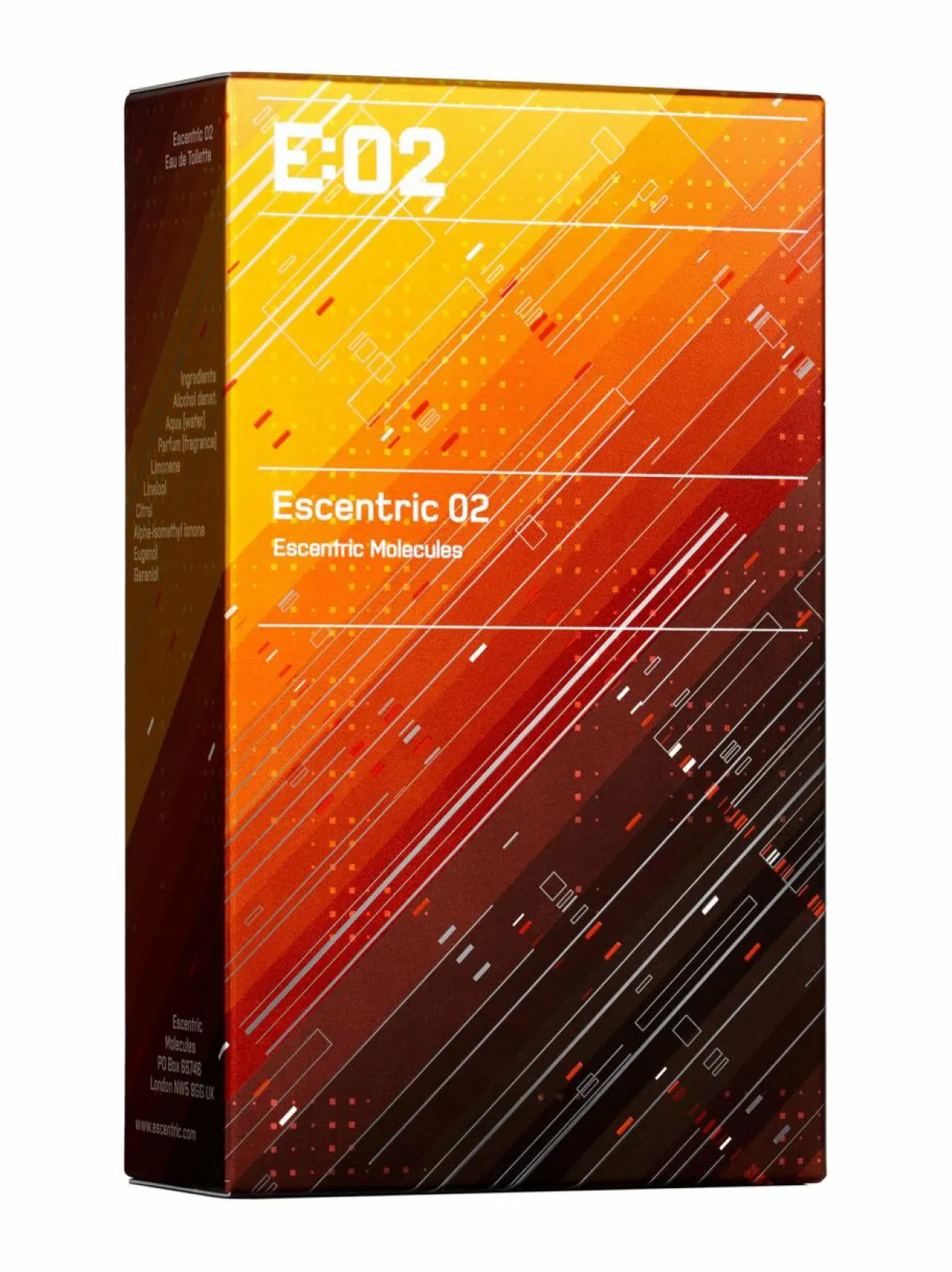 Escentric 02 -tuoksu sisältää tiivistyneintä mahdollista ambroksaania (13,5 %) eli synteettisiä ambran tuoksumolekyylejä. Ambroksaani on sekoitettu hedione-yhdisteestä eli vihreistä jasmiinimolekyyleistä, joiden virkistävä vaikutus muistuttaa gintonicia. Tuoksulla on kuiva puinen ja säkenöivä luonne vastateroitetulta kynältä tuoksuvan ISO E Super -molekyylin ansiosta.