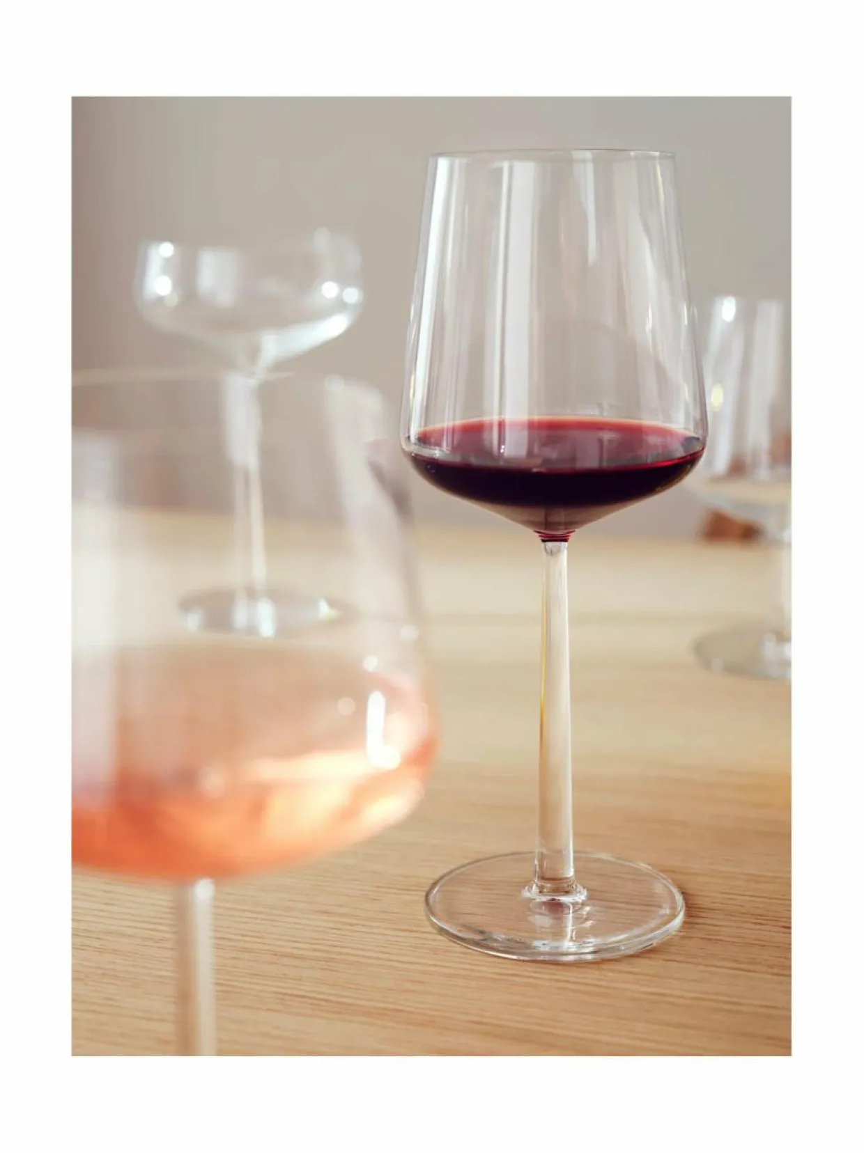 - Ohut reuna ja kapea, korkea jalka tekevät punaviinilasista muotoilultaan kauniin ja miellyttävän käsitellä