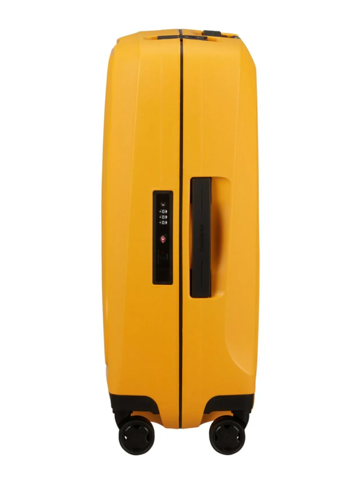 Tavarasi pysyvät turvassa tässä Samsonite Essens -lentolaukussa innovatiivisen 3-pistelukitusjärjestelmän ansiosta, jonka on alun perin Samsoniten patentoima. Essens-matkalaukut valmistetaan Euroopassa kierrätetyistä kestävistä materiaaleista, mikä on osa Recyclex™ Material Technology Initiative -aloitettamme. Tässä matkalaukussa on kaksi tilavaa pakkauskuutiota, jotka ovat irrotettavia, käsin pestäviä ja helppoja siirtää matkalaukusta suoraan kaappiin. Hiljaisesti rullaavat tuplapyörät on suunniteltu siten, että ne voidaan helposti irrottaa ja vaihtaa itse.