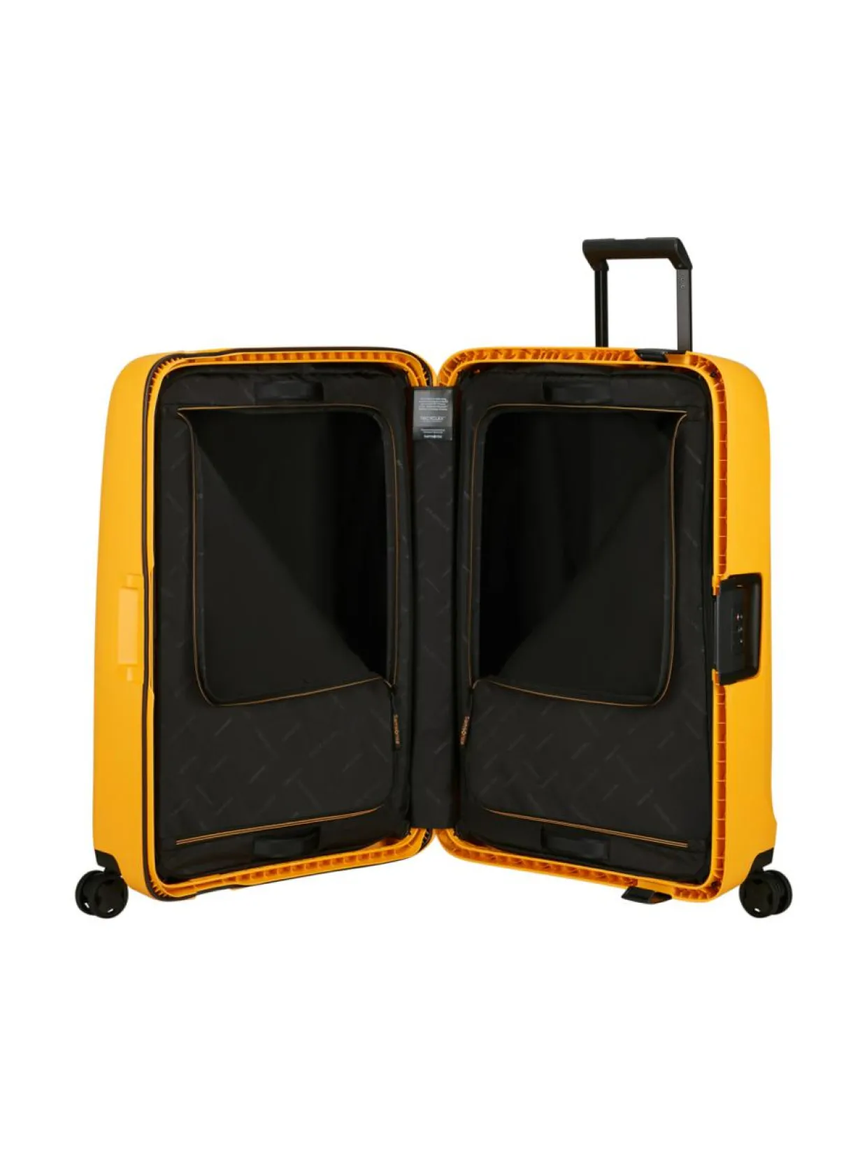 Tavarasi pysyvät turvassa tässä Samsonite Essens -matkalaukussa innovatiivisen 3-pistelukitusjärjestelmän ansiosta, jonka on alun perin Samsoniten patentoima. Essens-matkalaukut valmistetaan Euroopassa kierrätetyistä kestävistä materiaaleista, mikä on osa Recyclex™ Material Technology Initiative -aloitettamme. Tässä matkalaukussa on kaksi tilavaa pakkauskuutiota, jotka ovat irrotettavia, käsin pestäviä ja helppoja siirtää matkalaukusta suoraan kaappiin. Hiljaisesti rullaavat tuplapyörät on suunniteltu siten, että ne voidaan helposti irrottaa ja vaihtaa itse.