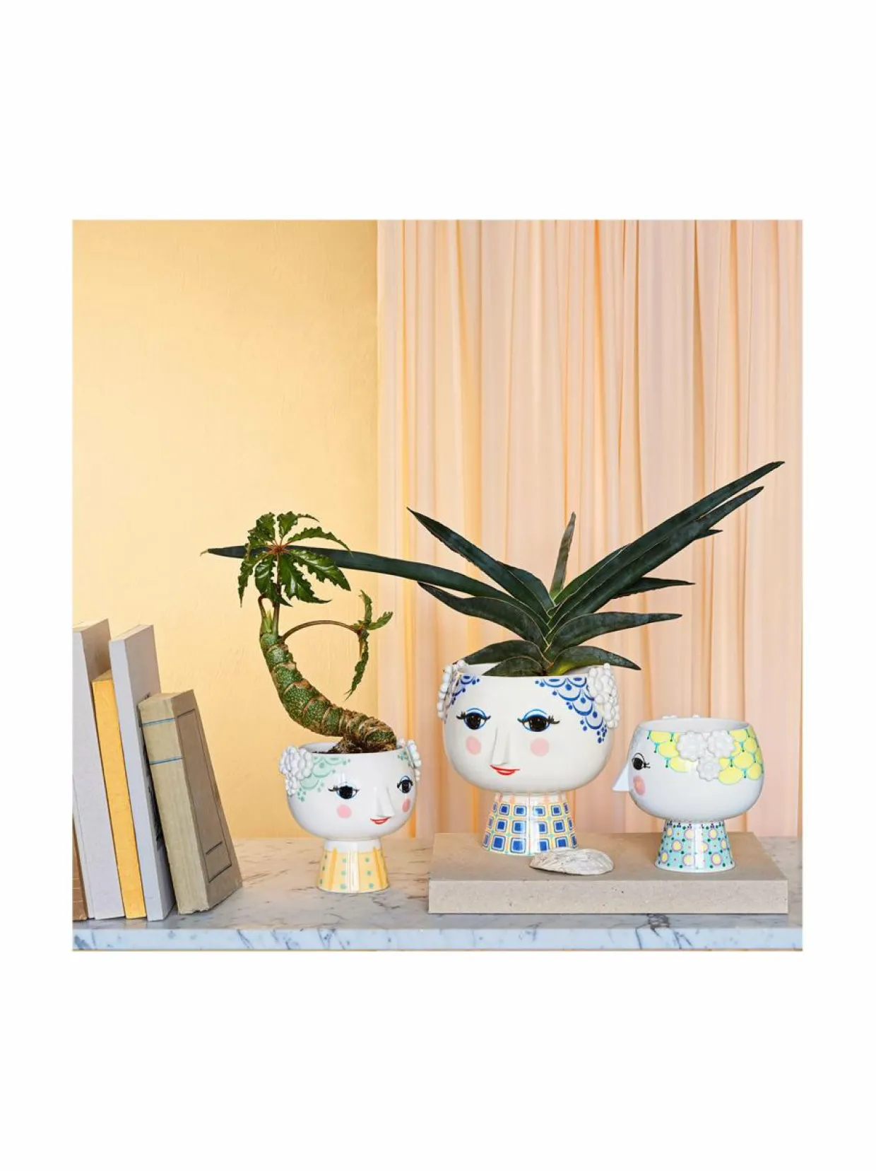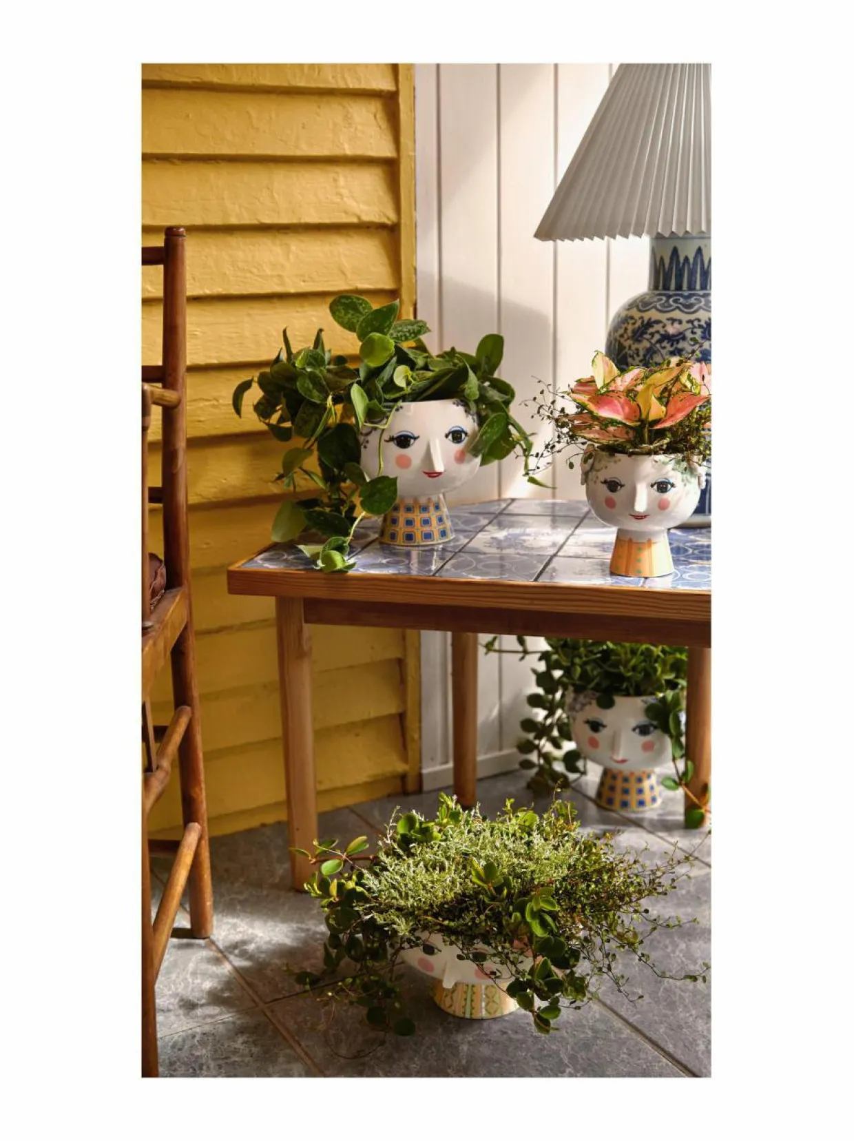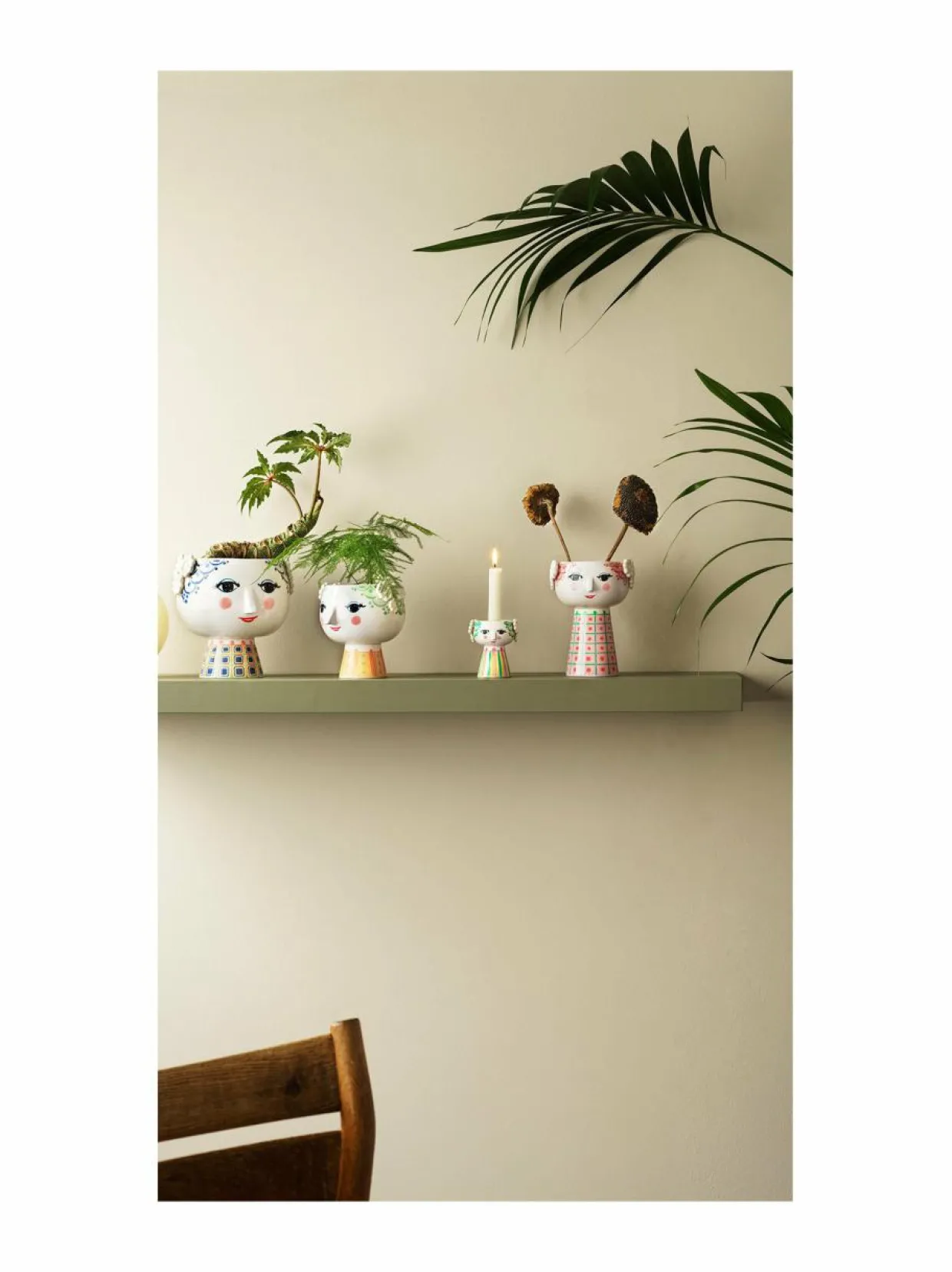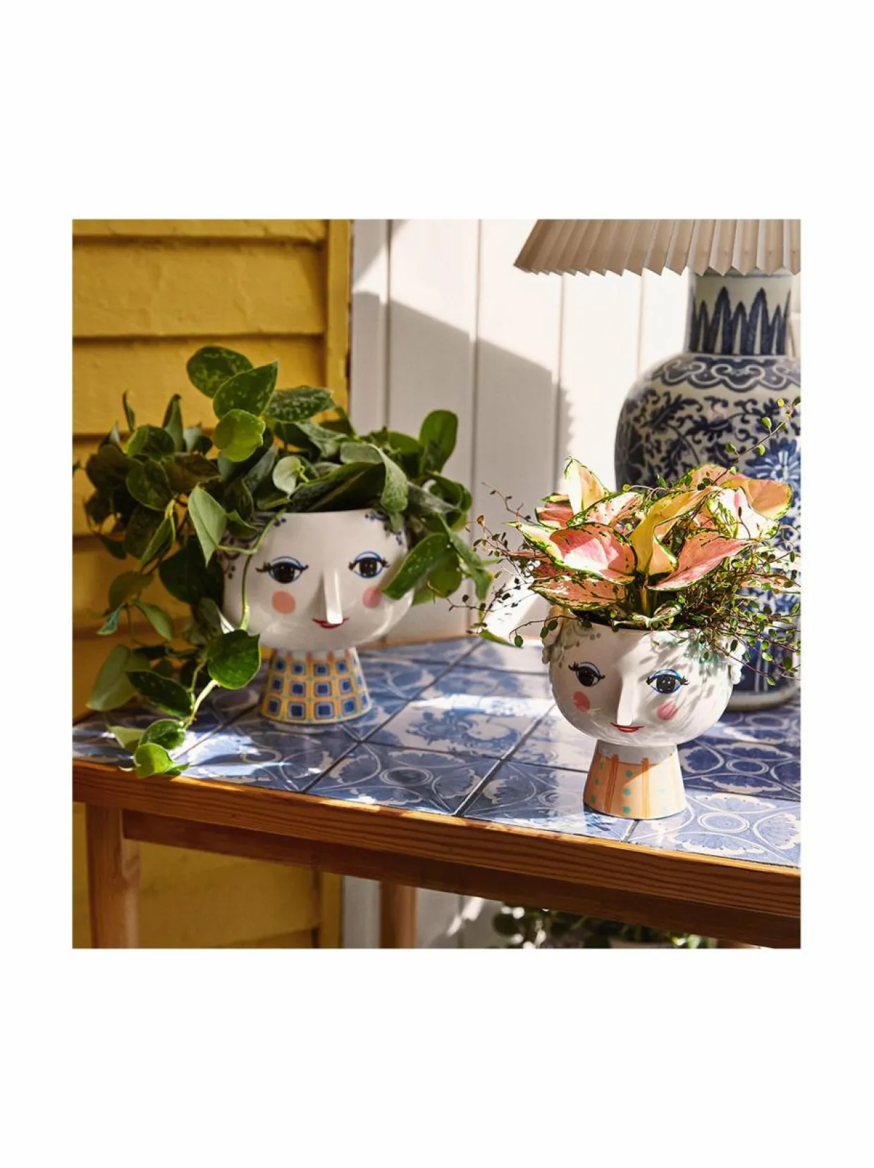 Bjørn Wiinbladin kauniisti hymyilevä Eva-kukkaruukku on esine, jonka avulla luot ainutlaatuisen ja värikkään tunnelman koko kotiisi. Kukkaruukun korkeus on 19 cm ja halkaisija 21 cm, mikä tekee siitä juuri sopivan yrteille, trendikkäille mehikasveille ja kukka-asetelmille. Eva-kukkaruukku on valmistettu kiiltäväksi lasitetusta posliinista. Mantelin muotoiset silmät ja terävä nenä ovat Wiinbladin alkuperäislinjoja, kun taas värikäs mekkokuviointi on uusi tulkinta Bjørn Wiinbladin arkistoista. Muoto on Bjørn Wiinbladin alkuperäisten Eva-maljakkojen innoittama, siinä on leveä pää ja kartiomainen vartalo.