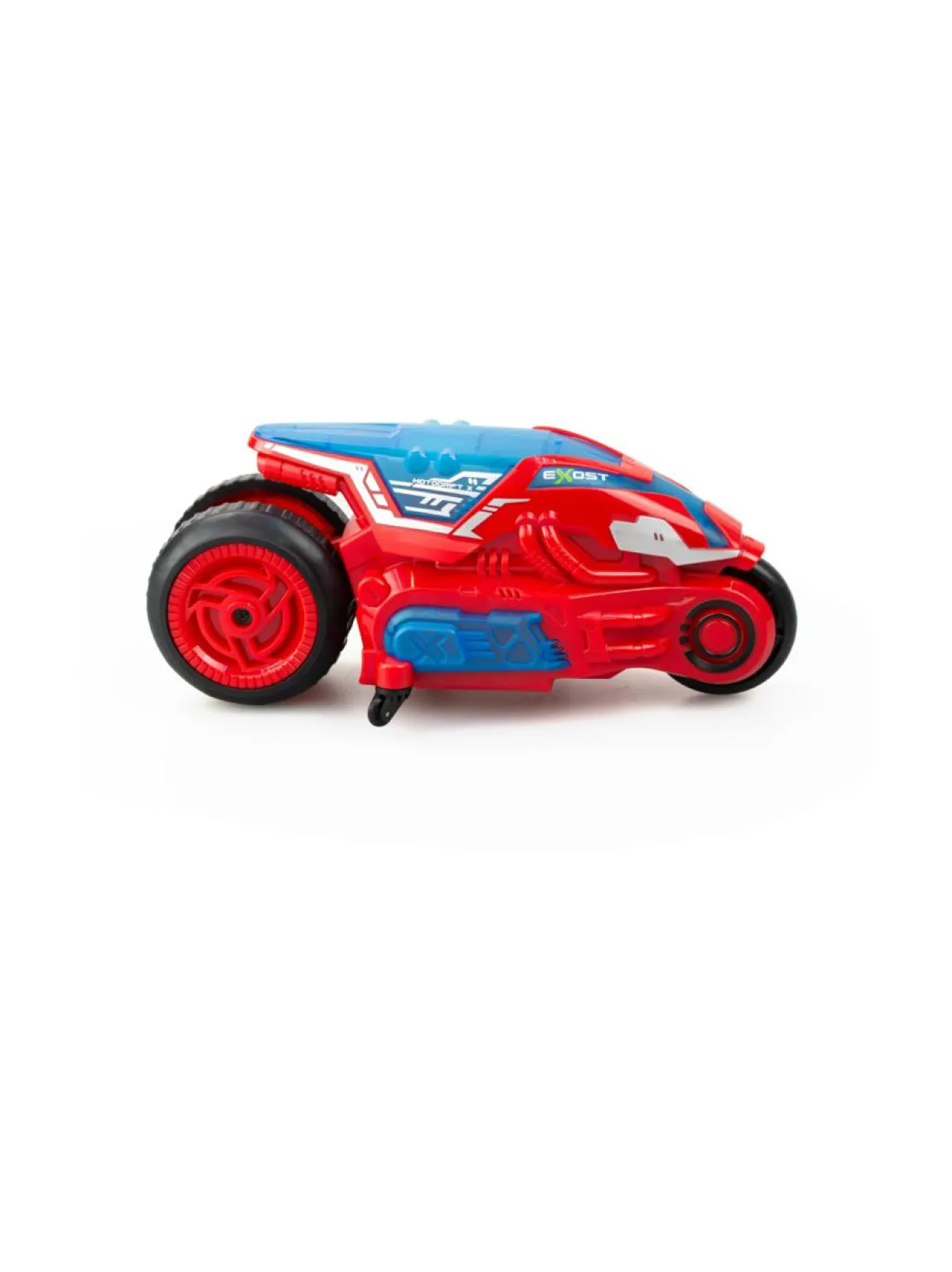 EXOST on ainutlaatuinen, moderni, tyylikäs ja laadukas tuotemerkki, joka antaa 5–14-vuotiaille pojille ja tytöille mahdollisuuden kokea autojen maailmaa ja Exost Team -tunnelmaa todella läheltä. Enemmän kuin vain ajokokemus… Pidä hauskaa Exost Motodrift ajoneuvolla. Motodrift on mahtava futuristinen pyörä taka-akselilla. Taajuus: 2,4 GH. Enimmäisnopeus 8 km / h.