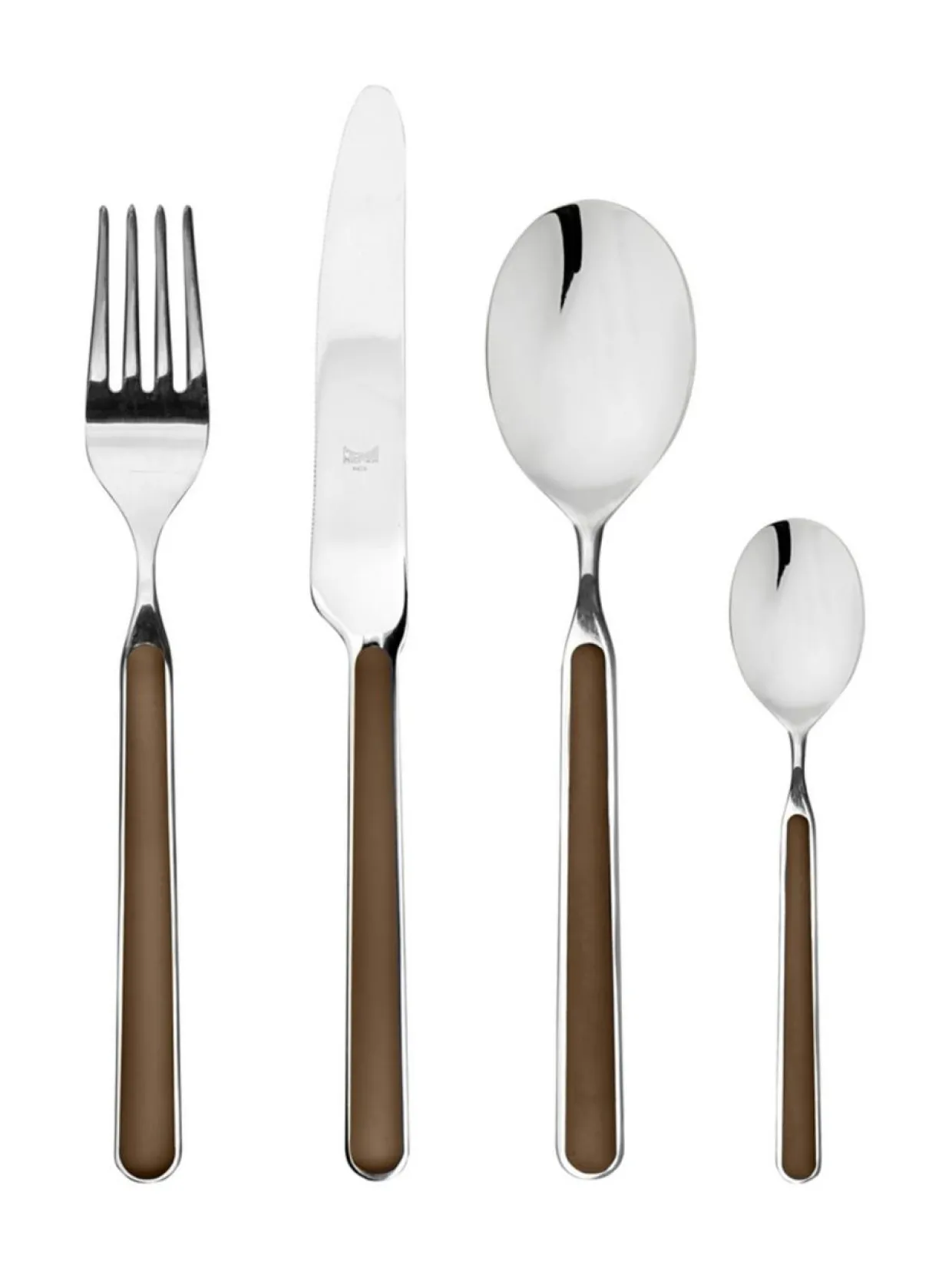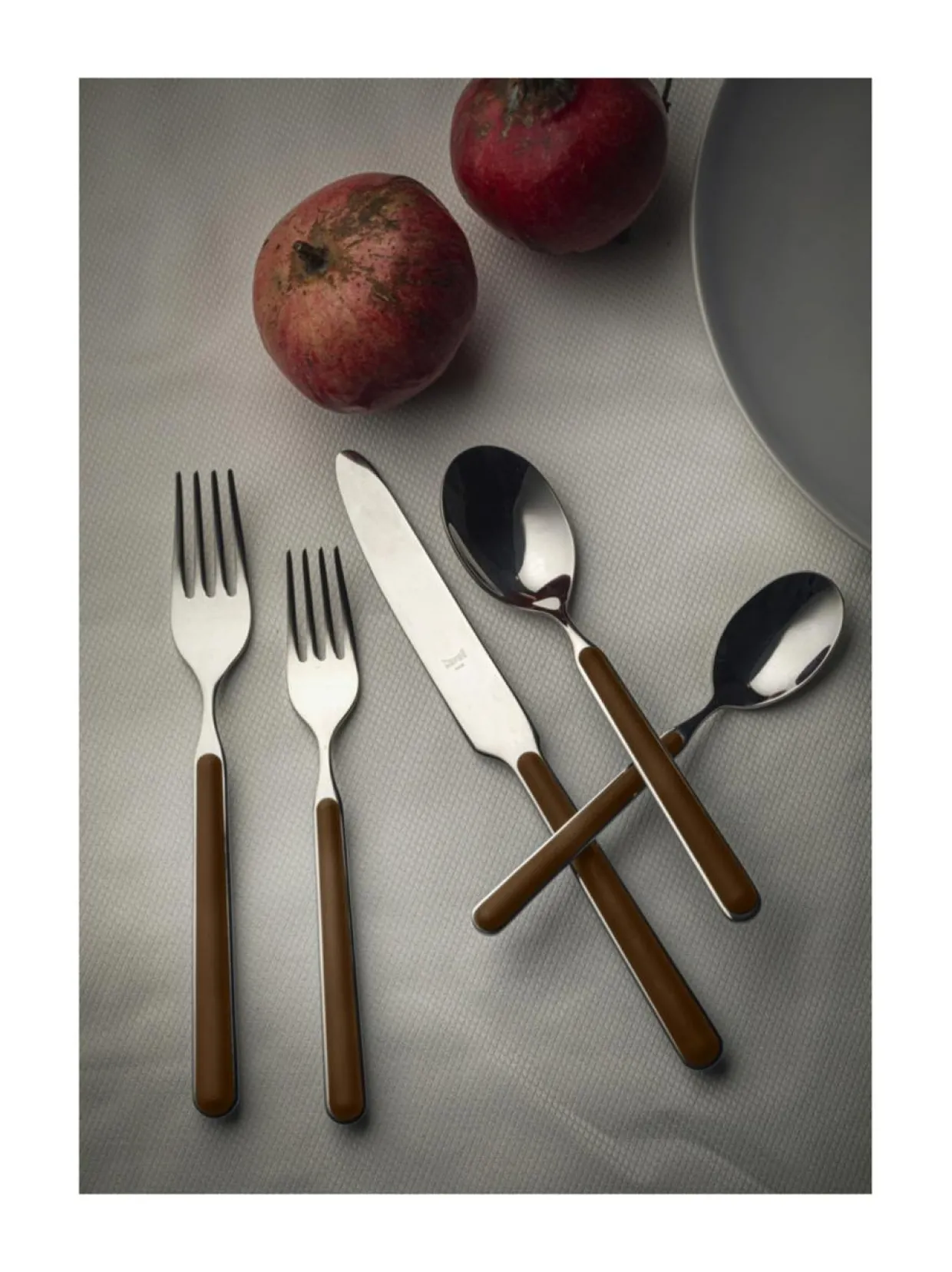 Lasikuidulla rikastettu hartsinen kahvaosa takaa aterimien kestävyyden ja värejen kirkkauden monien pesukertojenkin jälkeen. Kahvan hartsiosat ovat ultraäänihitsattuja mikä tekee kahvaosasta pitkäkestoisen. Materiaali ruostumatonta terästä, kahvaosat hartsia. Konepesunkestävä. Valmistettu Italiassa.Tuotenumero1518977 Materiaaliruostumaton teräs, hartsi, lasikuitu VäriTOBACCO Avainsanataterimet, aterinsetti, väri, värilliset aterimet