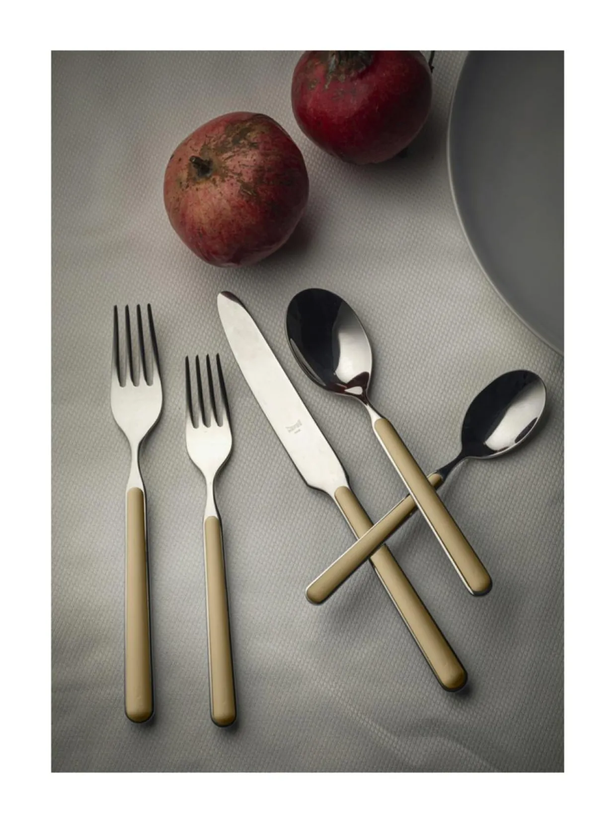 Lasikuidulla rikastettu hartsinen kahvaosa takaa aterimien kestävyyden ja värejen kirkkauden monien pesukertojenkin jälkeen. Kahvan hartsiosat ovat ultraäänihitsattuja mikä tekee kahvaosasta pitkäkestoisen. Materiaali ruostumatonta terästä, kahvaosat hartsia. Konepesunkestävä. Valmistettu Italiassa.Tuotenumero1518983 Materiaaliruostumaton teräs, hartsi, lasikuitu VäriSESAME Avainsanataterimet, aterinsetti, väri, värilliset aterimet