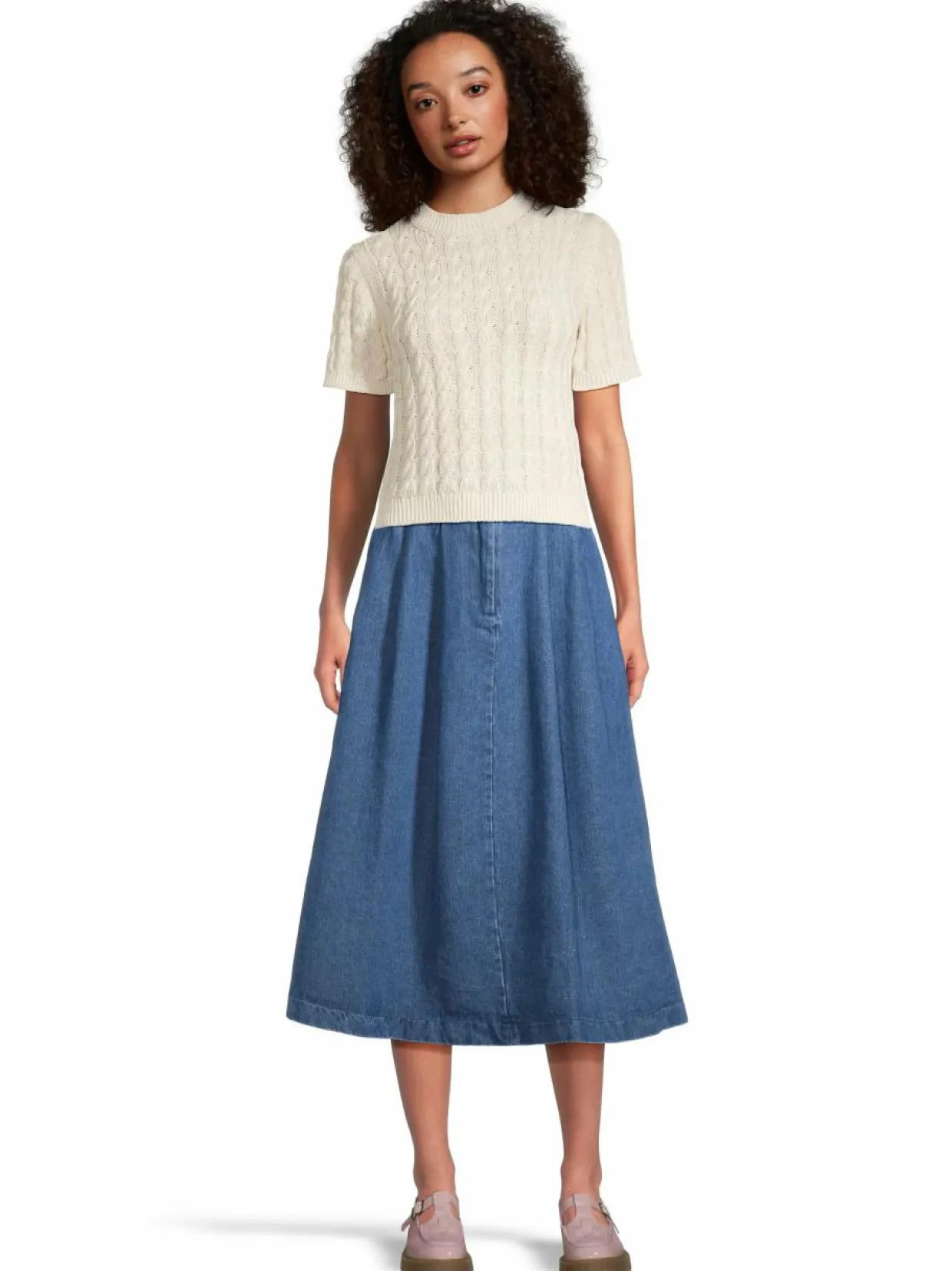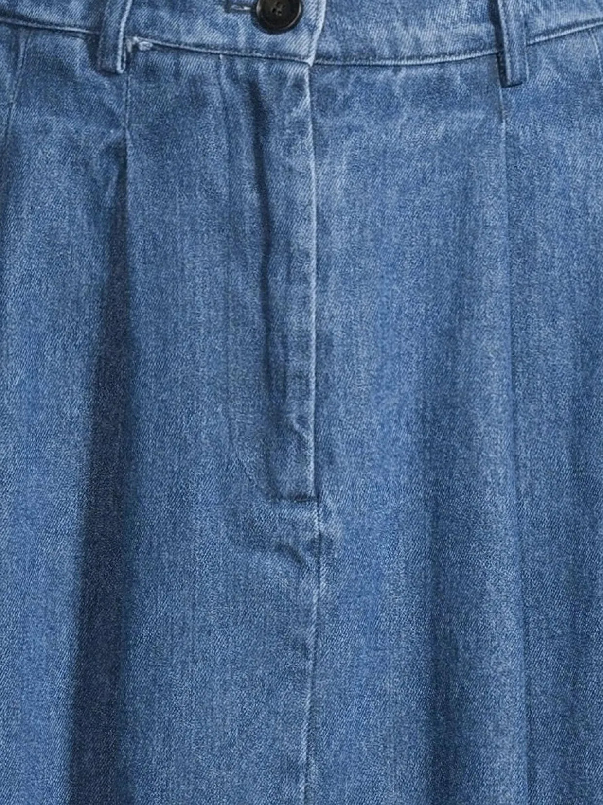 Rue de Tokion A-linjainen farkkuhame on valmistettu pehmeästä ja mukavasta luomupuuvillasta. Hameessa on kaksi sivutaskua ja joustava resori vyötäröllä. Täydellinen valinta kesäiseen rentoon arkipukeutumiseen.