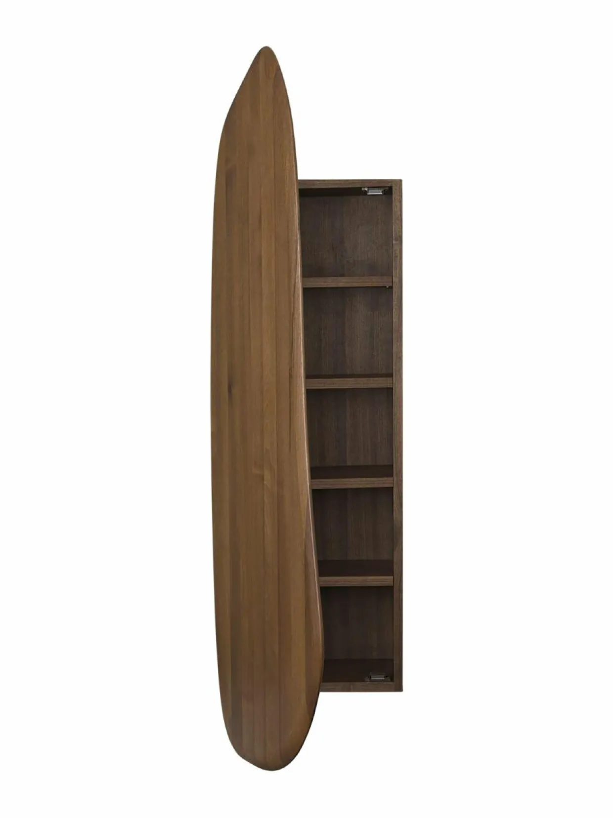 Feve-seinäkaappi uniikilla muotoilulla ja elegantilla siluetilla. Valmistettu käytännöllisten säilytysratkaisujen luomiseen täydellisestä FSC-sertifioidusta, korkealaatuisesta pähkinäpuusta neljällä säädettävällä hyllyllä. Ohut, koristeellinen kaappi luonnonmukaisella muodolla tarjoaa ihanteellisen säilytysratkaisun. Sitä voidaan käyttää kaikkialla kodissa korujen säilyttämisestä makuuhuoneessa lasien tai pienten kulhojen säilyttämisestä ruokasalissa.