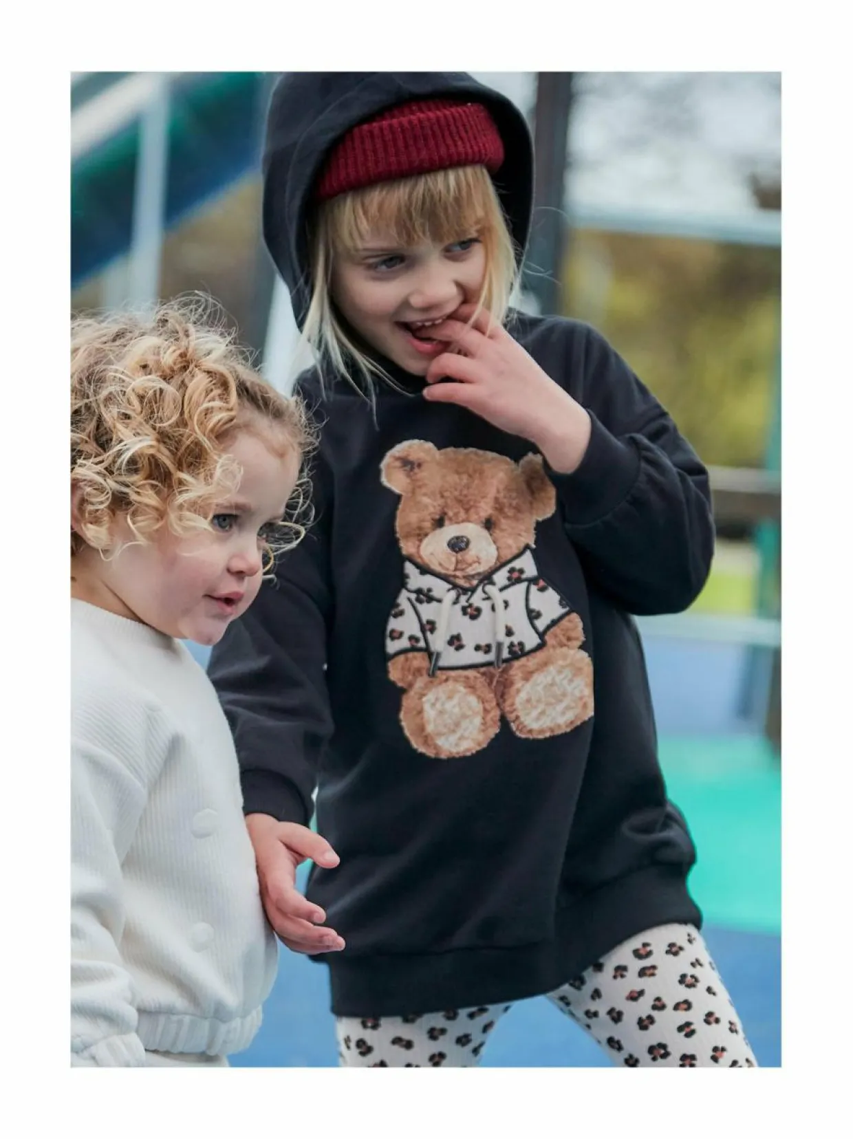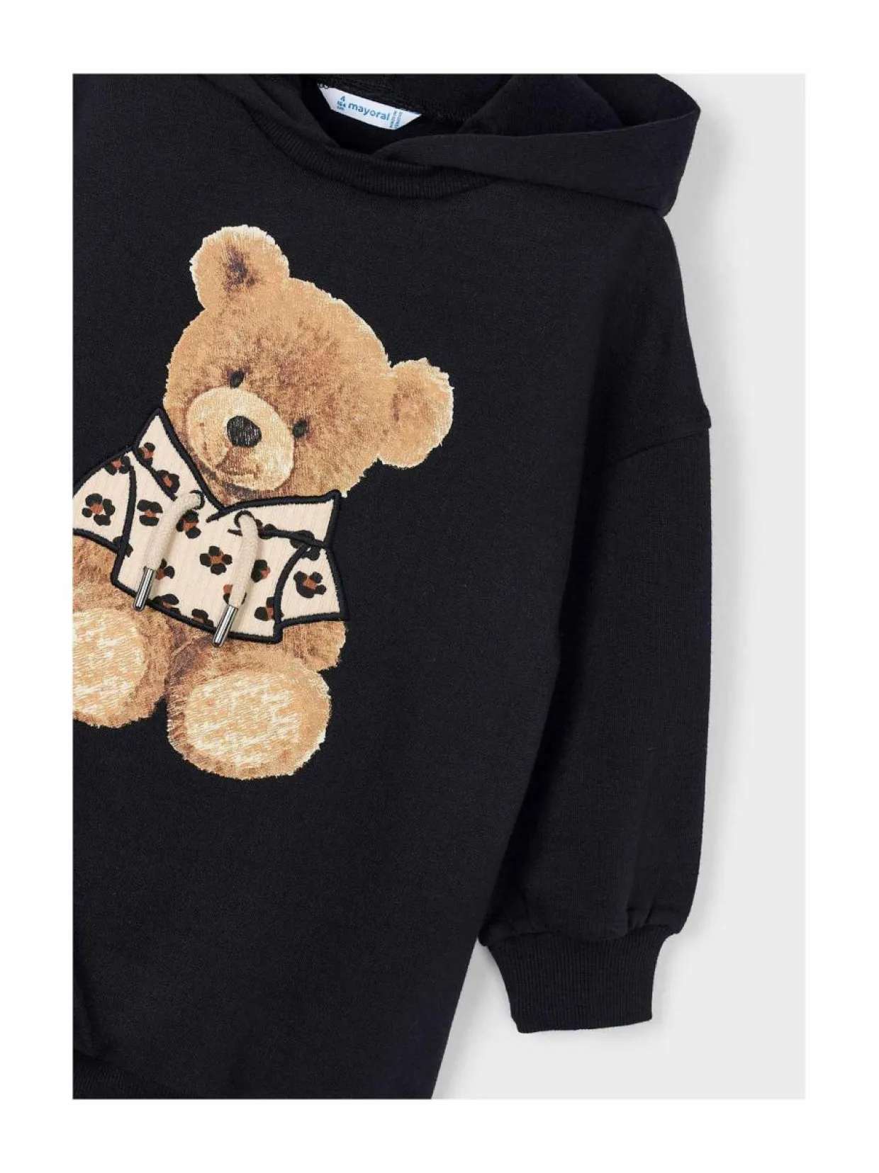 Mayoralin Fleece-hupparimekko on pehmeä ja lämmin valinta lapselle. Etupuolella on söpö painatus, joka lisää leikkisän aksentin. Mekko on suunniteltu rennoksi, tarjoten mukavan istuvuuden ja liikkumisvapauden. Sisäpinnalla oleva pehmeäksi harjattu fleece on miellyttävä ihoa vasten.