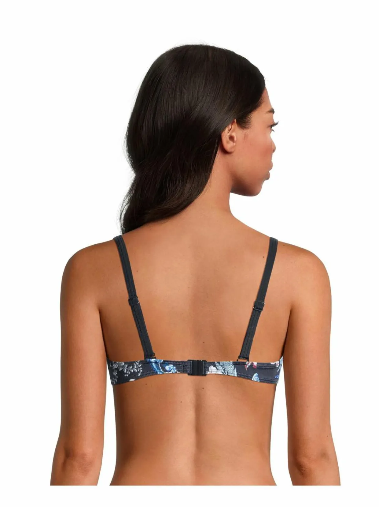 Damellan Flower Paisley -bikiniyläosassa on topatut, kaarituelliset kupit, joiden välissä on somisteena rusetti. Mallissa on ohuet, säädettävät olkaimet ja takana klipsikiinnitys. Tämä bikiniyläosa on mahdollista yhdistää saman sarjan Flower Paisley Tai Brief -bikinialaosaan.
