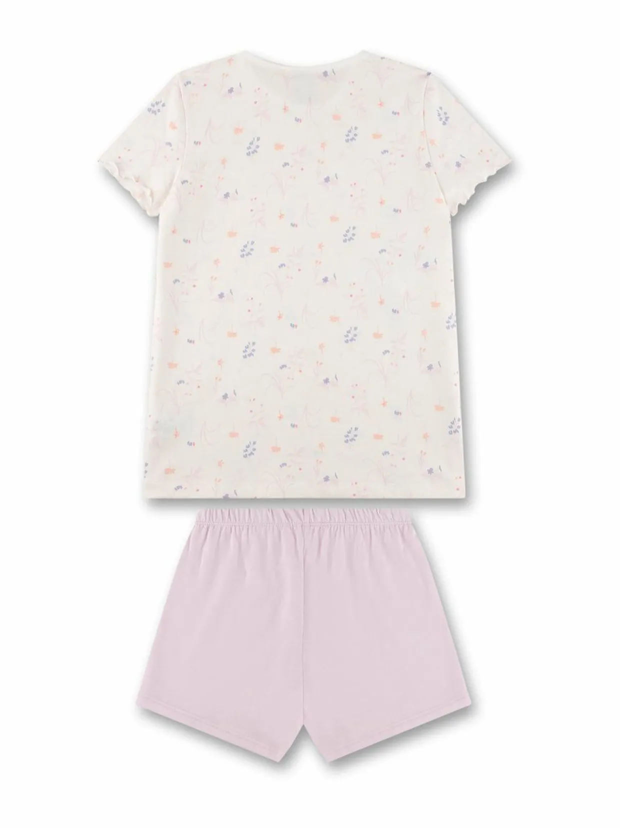 Sanetta-merkin Flower Print -shortsipyjama on valmistettu pehmeästä ja hengittävästä puuvillan ja modaalin sekoitteesta. Yöasussa on kaunis kukkakuvioinen yläosa ja yksiväriset shortsit. Yläosassa on lyhyet hihat ja pyöreä pääntie. Shortsit ovat joustavat ja mukavat. Yöasu on ihanteellinen nukkumaanmenoon ja rentoutumiseen. Se on valmistettu 50 % puuvillasta ja 50 % modaalista. Materiaali on pehmeä ja hengittävä, mikä tekee yöasusta mukavan käyttää. Flower Print -shortsipyjama on ihanteellinen lahja lapselle.