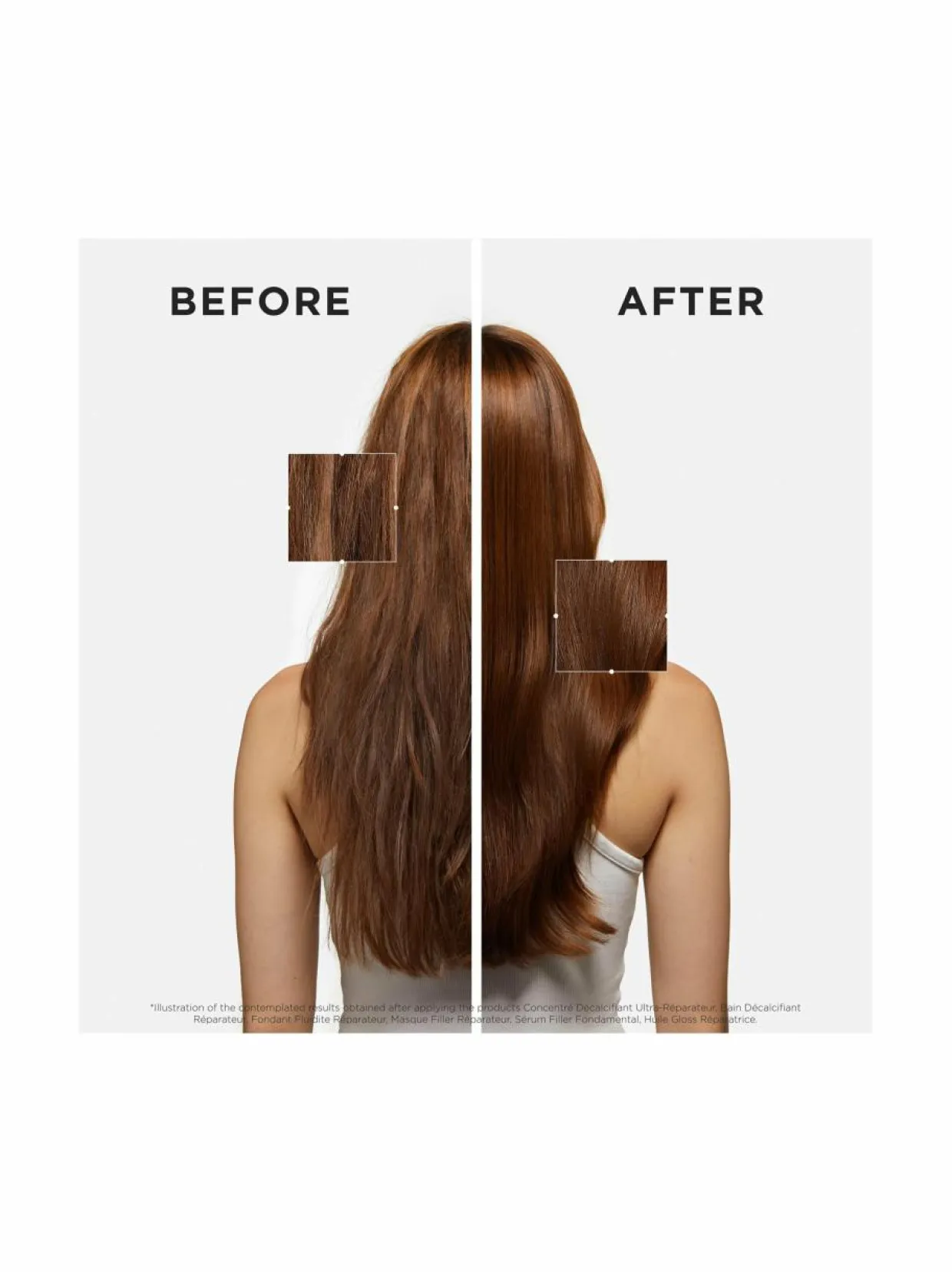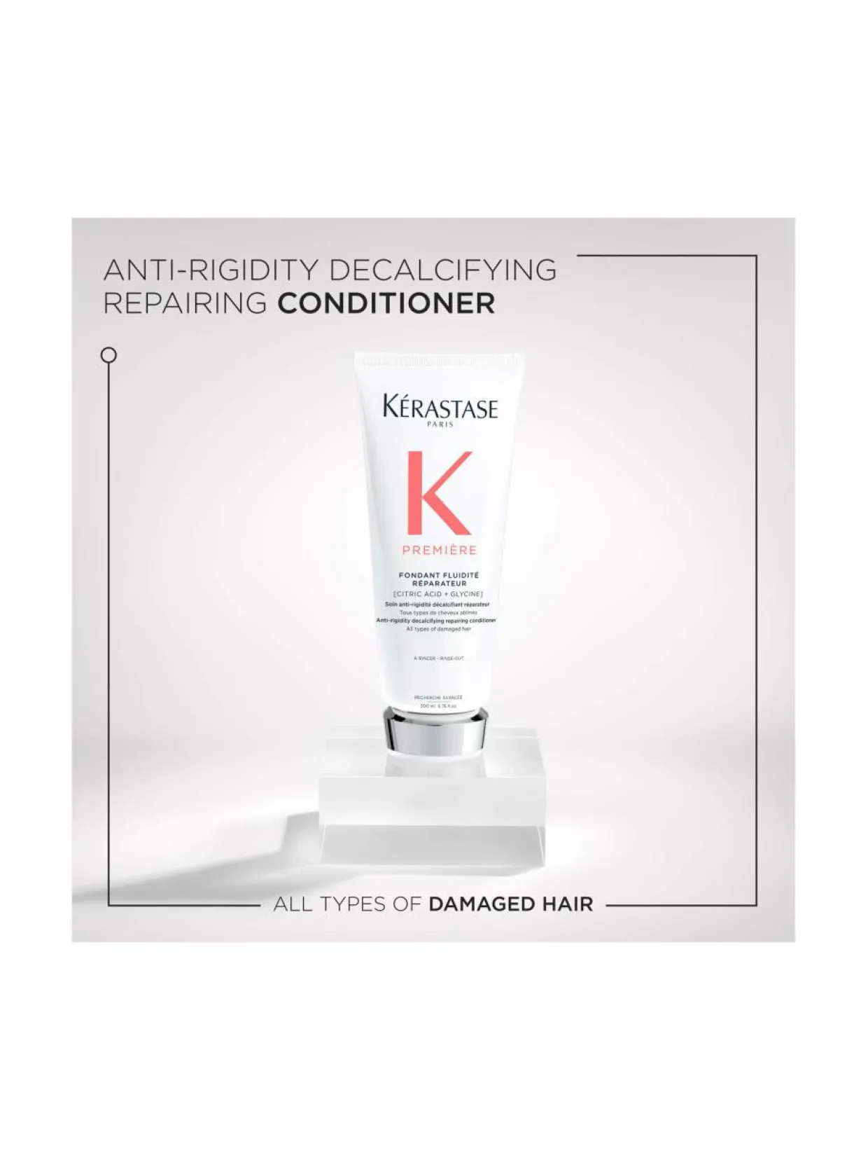 Kérastasen Fondant Fluidité Réparateur on korjaava, kalkkia poistava ja pehmentävä hoitoaine vaurioituneille hiuksille. Se poistaa kalkin kertymää, joka vahingoittaa käsiteltyjä hiuksia, ja korjaa sitten vaurioita kaksitehoisella vaikutuksella palauttaen hiuksiin pehmeyttä, kosteutusta ja vahvuutta.Kalkkia poistava korjaava hoitoaine kaikentyyppisille vaurioituneille hiuksille. Se auttaa palauttamaan hiusten luonnollista kimmoisuutta vahvistamaan hiuksia. Ylikäsitellyt tai vaalennetut hiukset ovat välittömästi kosteutetut ja joustavat.
