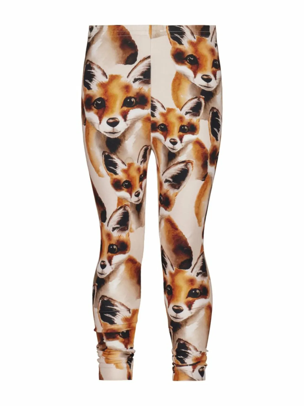 Lasten pehmeät ja mukavat leggingsit luomupuuvillaa. Vyötärölinja on miellyttävän joustava. Housuja somistaa ihana kettukuosi.