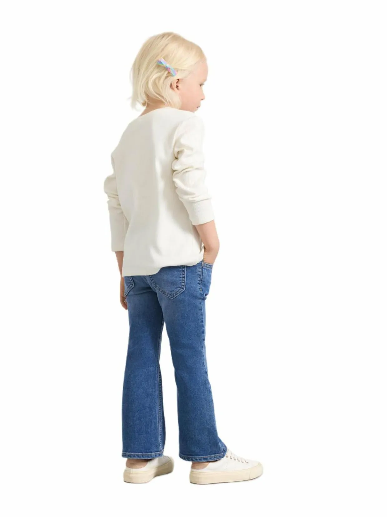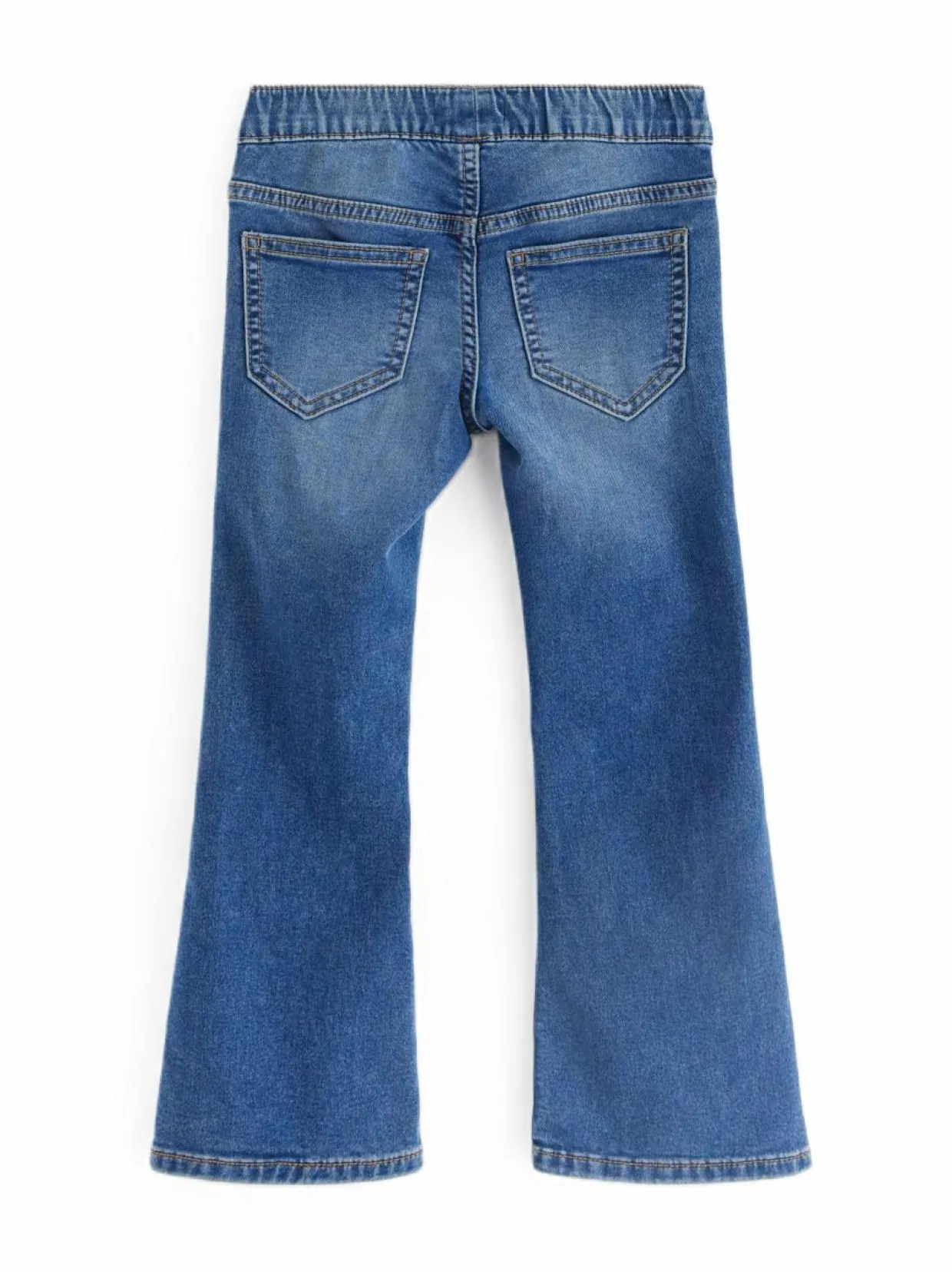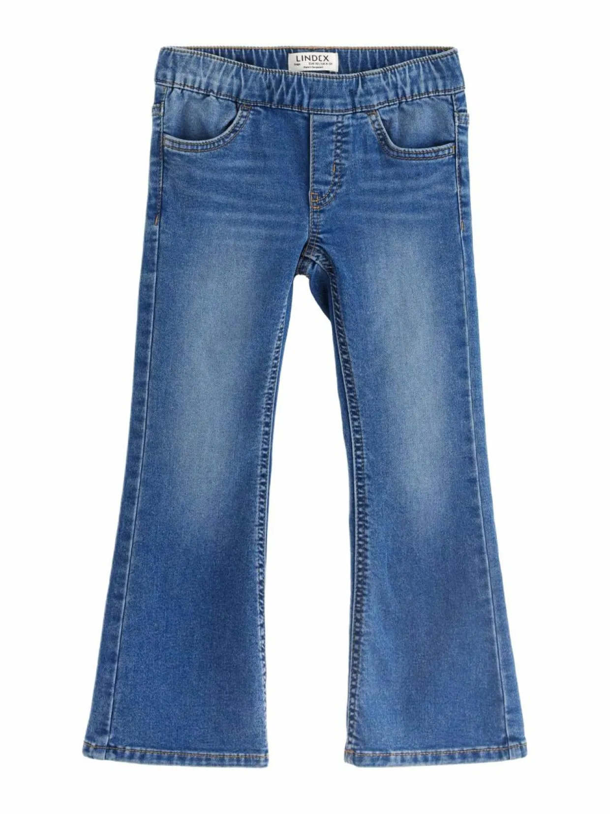 Lindexin joustavat pull-up-farkut on valmistettu pehmeästä denimjerseystä. Farkuissa on joustava vyötärö ja levenevät lahkeet.