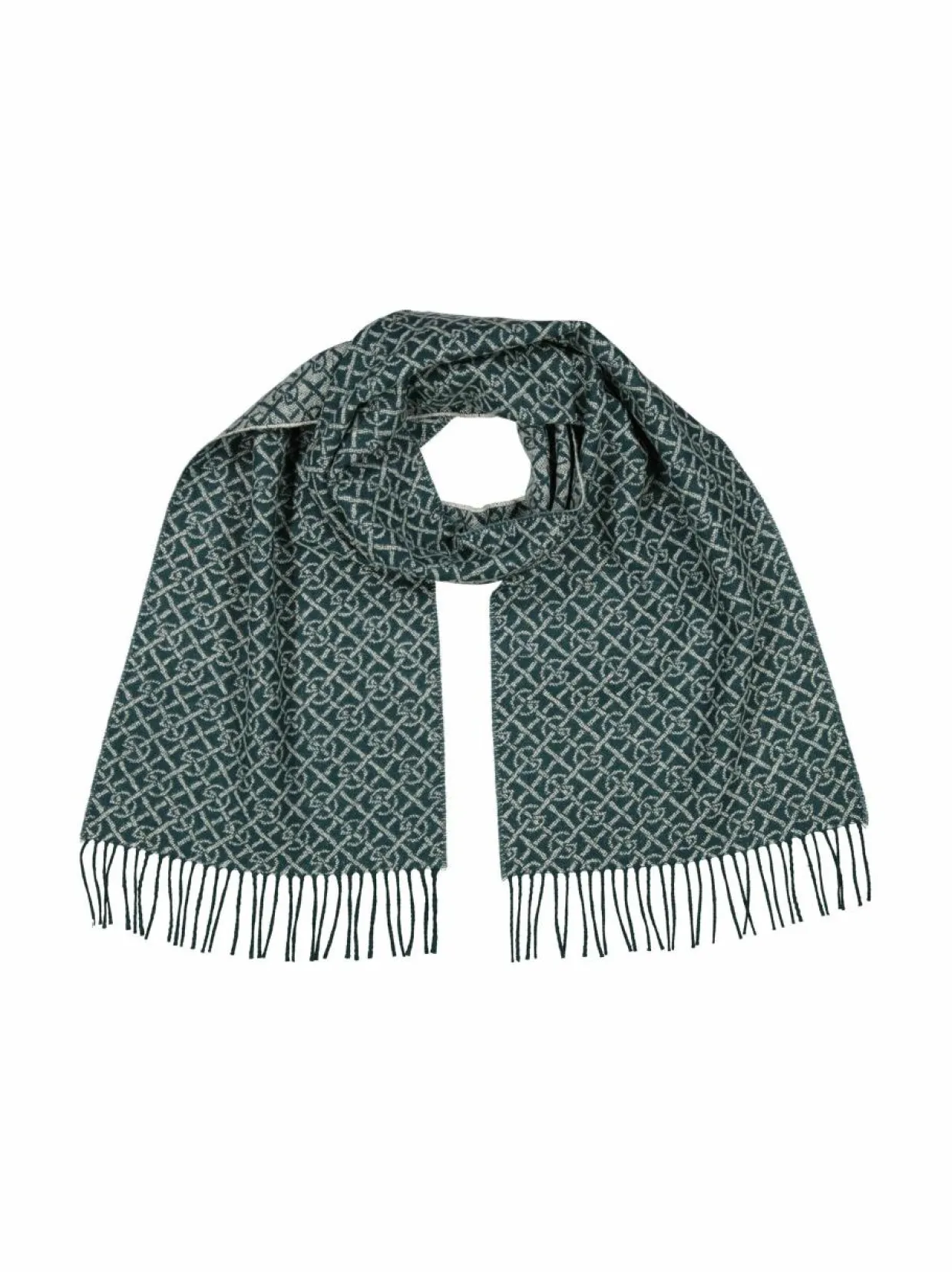 Tämän kaulaliinan kuviointi koostuu vaatemerkin logokirjaimista. Huivi on valmistettu pehmeästä ja lämpimästä villasta.