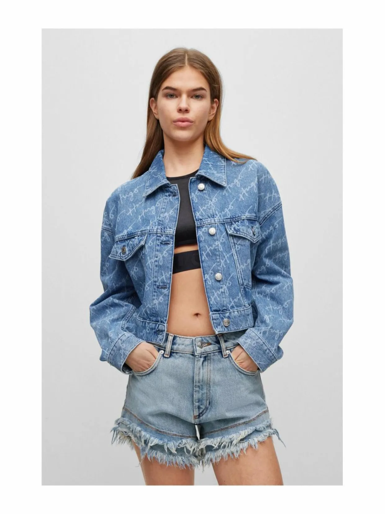 ErityistäTämän tuotteen valmistuksessa on käytetty myös kierrätyspuuvillaa. Materiaali100 % puuvillaa Hoito-ohjeetHienopesu. Ei valkaisua, ei rumpukuivausta. Silitys keskilämmöllä. PesuohjeetKonepesu Pesulämpötila30 °C KokotiedotSelkäosan pituus 48 cm ValmistusmaaTurkki Väri435 BRIGHT BLUE Avainsanatfarkkutakki, hugo farkkutakki, farkkupaita, Hugo, paitatakki, cropped, lyhyt farkkutakki