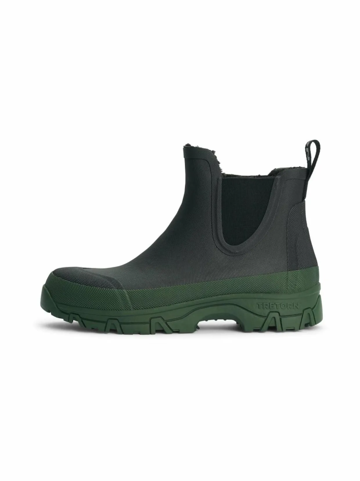 Tukeva ja vakaa Chelsea-mallinen kumisaapas Tretornilta. Saapas on varustettu selviytymään vaativimmassakin maastossa luonnossa, mutta sitä voi käyttää myös kaupungissa. Saapas on valmistettu käsityönä luonnonkumista ja sisäpuoli on kierrätettyä ja nopeasti kuivuvaa nukkaa.
