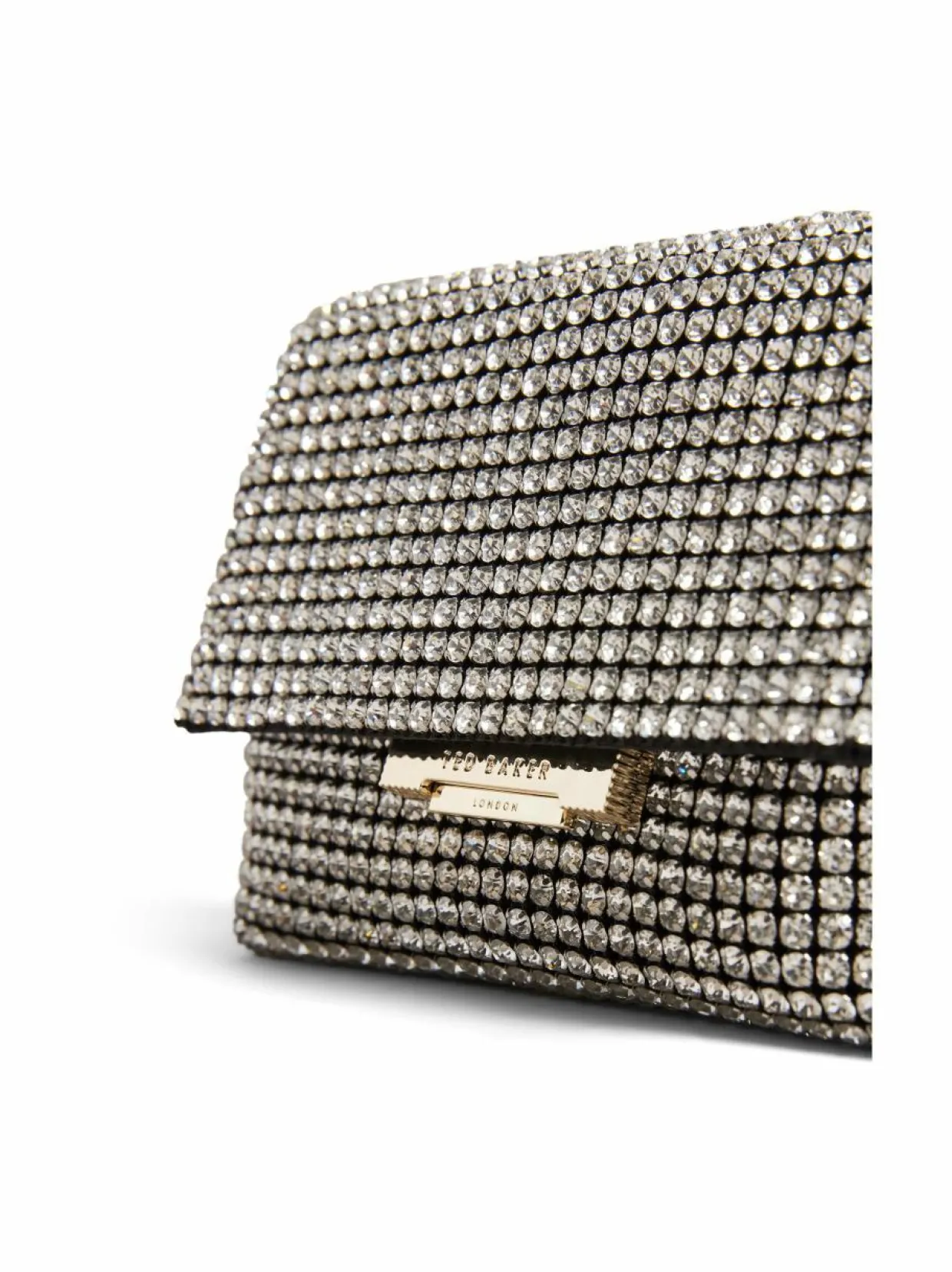 Ted Bakerin näyttävä juhlalaukku on koristeltu pienillä kristalleilla. Kimaltelevaan laukkuun tuo lisähehkua myös olkaketju sekä logollinen metallilukko. Olkaketju mahdollistaa laukun käytön olalla tai rinnan halki. Voit toki käyttää laukkua myös clutch-mallisena kädessä. Laukussa on päälokeron lisäksi yksi avotasku. Mitat: Leveys 15 cm, korkeus 10,5 cm ja syvyys 6,5 cm.