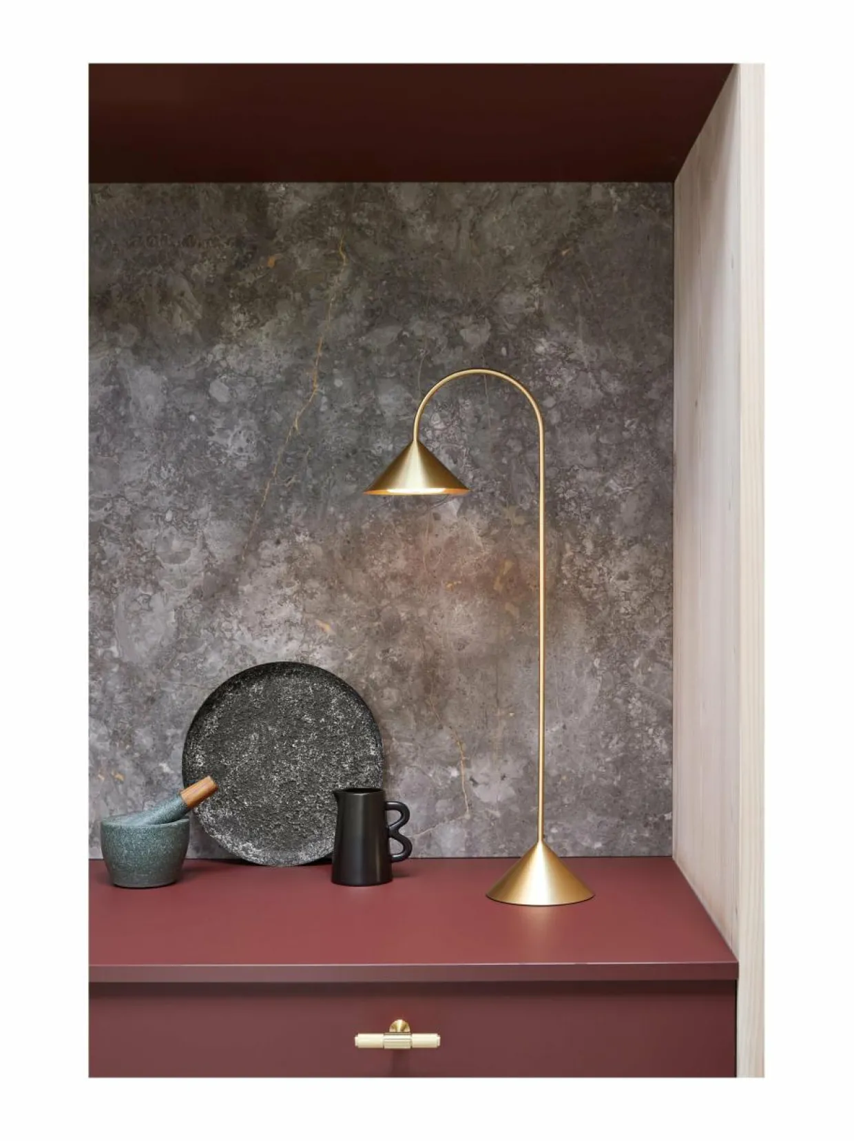 Geometrisen Grasp Portable -valaisimen on Frandsenille suunnitellut Thomas Albertsen. Se on tanskalaisen funktionalistisen valaisindesignin taidonnäyte. Ajaton ja tilaan kuin tilaan sopiva, siirreltävä valaisin sopii sekä ulos kaikenlaiseen säähän että sisäkäyttöön esim. pitkien keskustelujen äärelle.