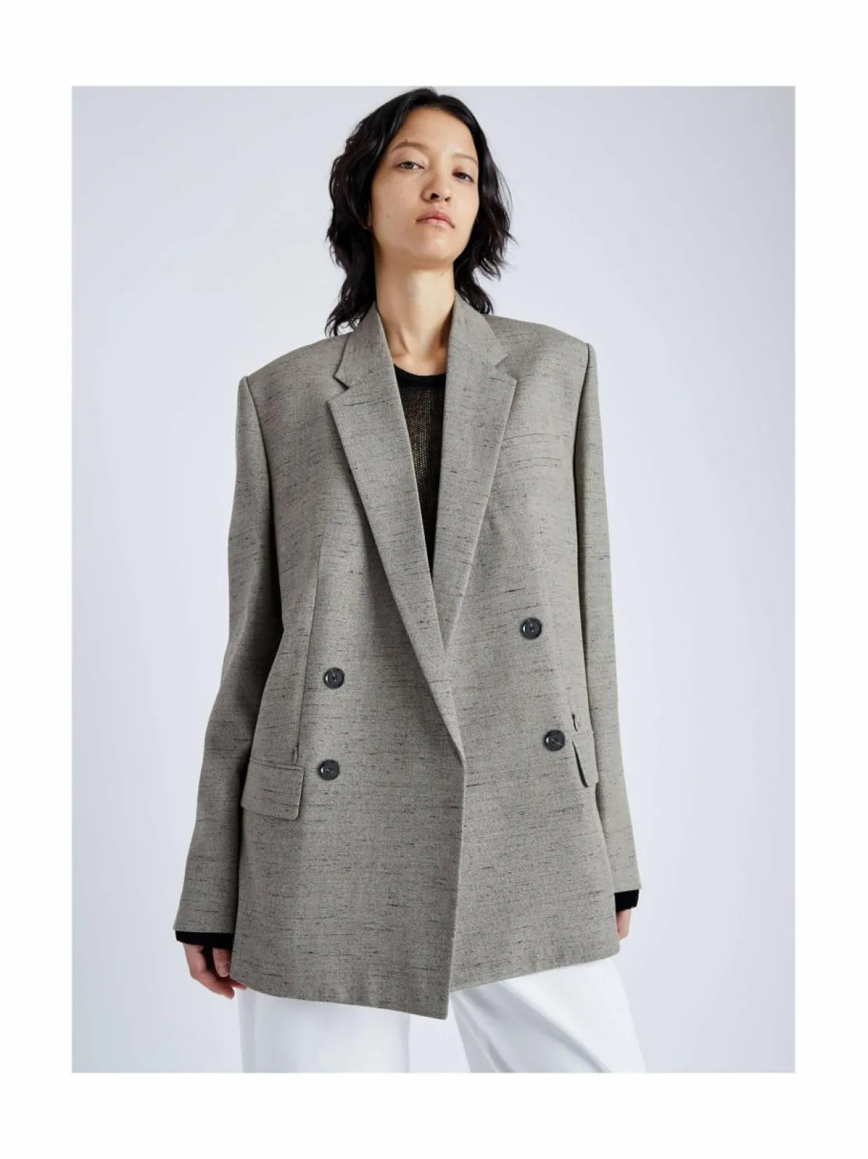 Proenza Schoulerin Hadley-bleiseri on täydellinen valinta modernille naiselle, joka arvostaa tyylikästä ja ajankohtaista pukeutumista. Tämä bleiseri on valmistettu viskoosisekoitteesta, jossa mukana ripaus hengittävää pellavaa. Kevyt polyamidilisäys tuo kankaaseen kestävyyttä ja joustavuutta.